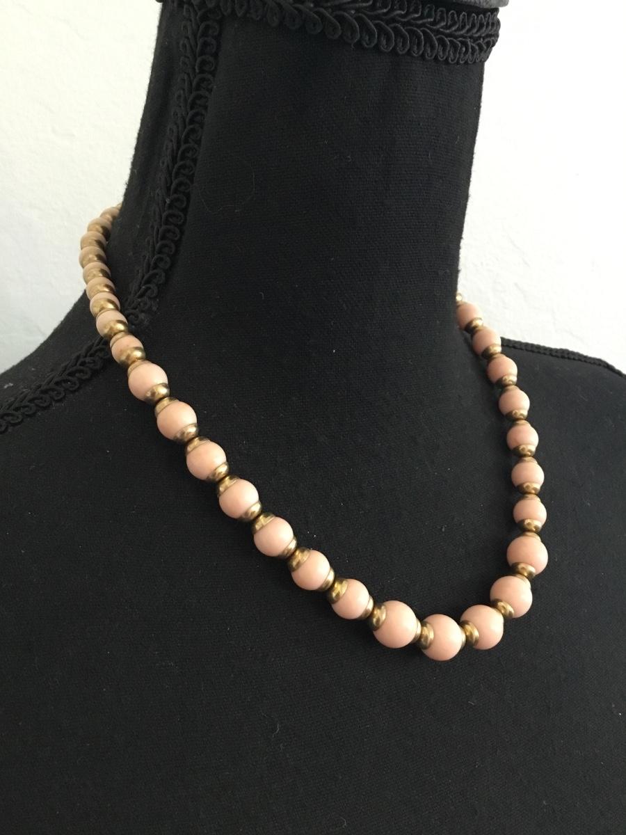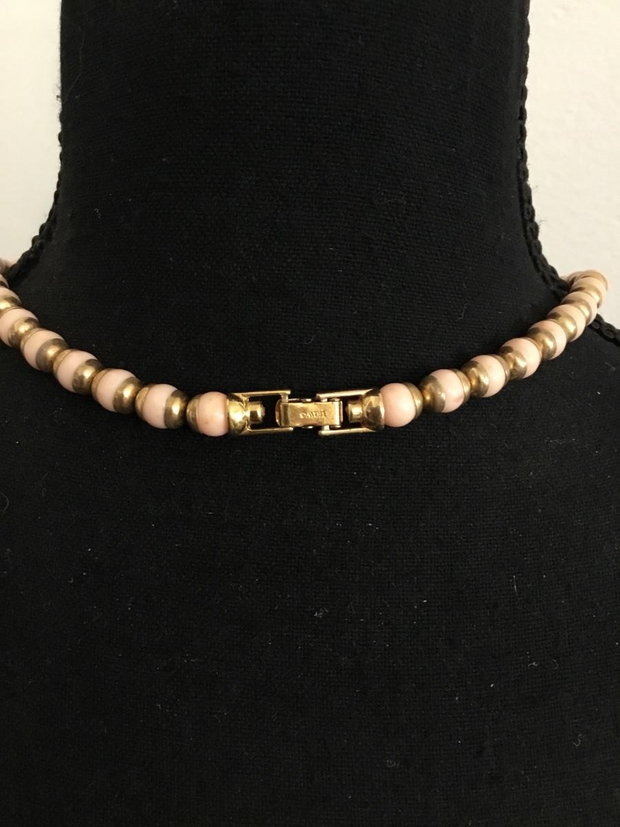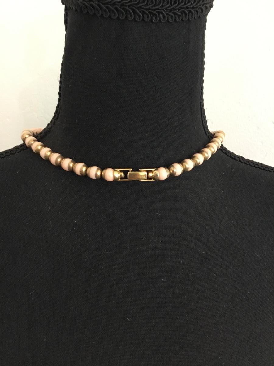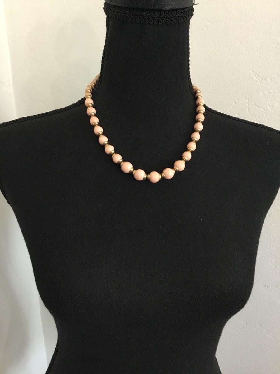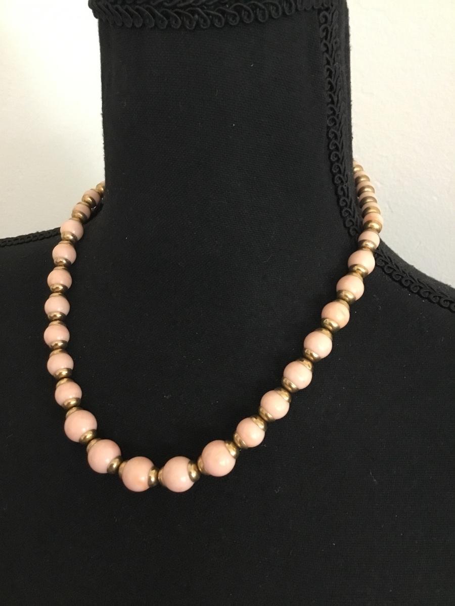 Beautiful vintage Avon lite blush pink beard, and gold toned necklace