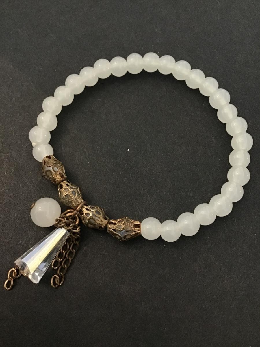 Beautiful vintage beaded stretch bracelet & crystal charm