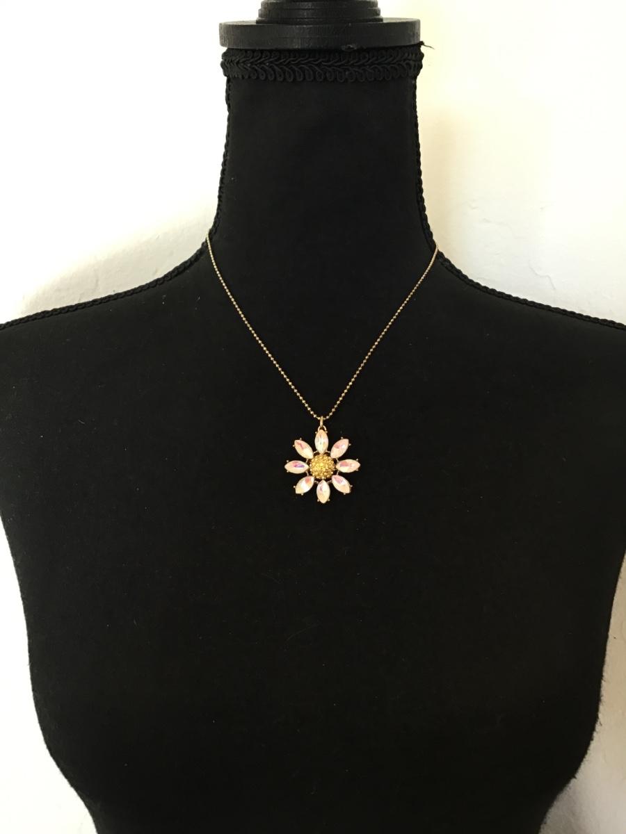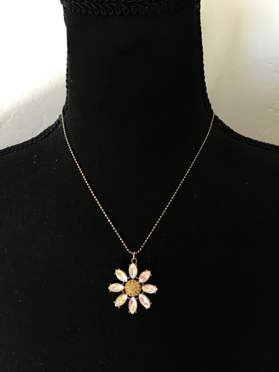Beautiful vintage, Betsey Johnson, crystal rhinestone daisy Flower necklace.