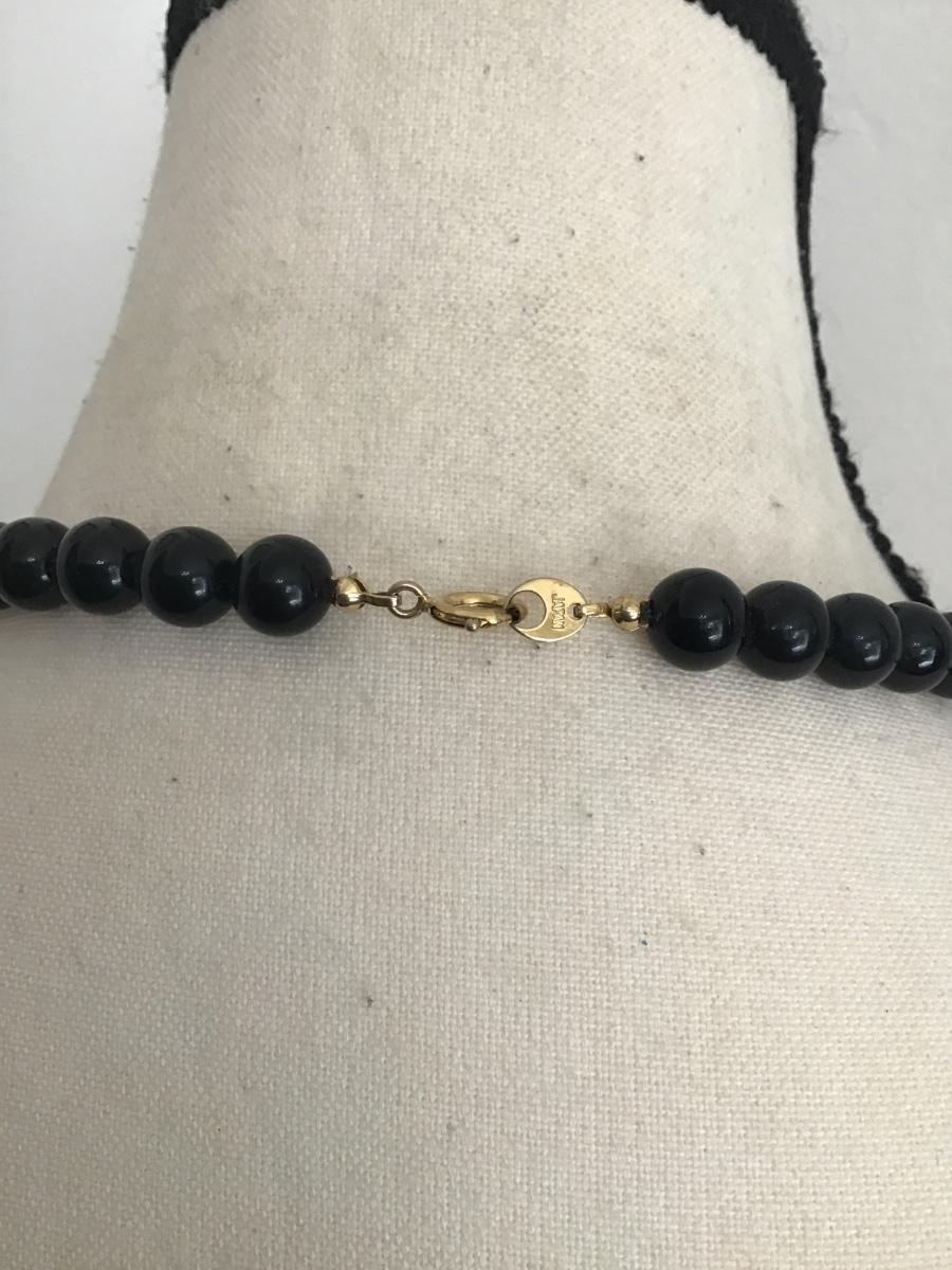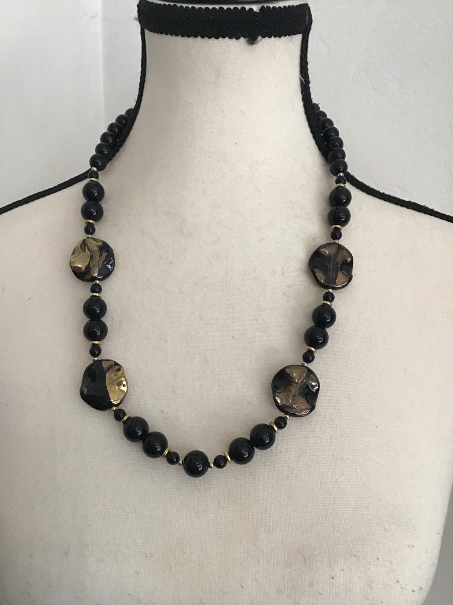 Beautiful vintage black Faceted graduated French glass necklace with gold tone spacers please see attached photos