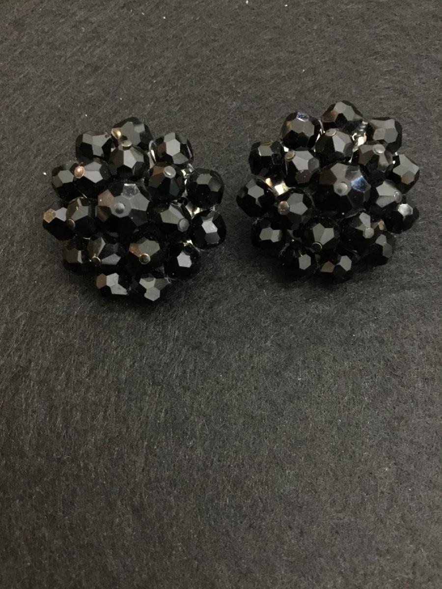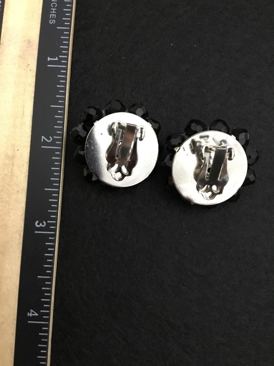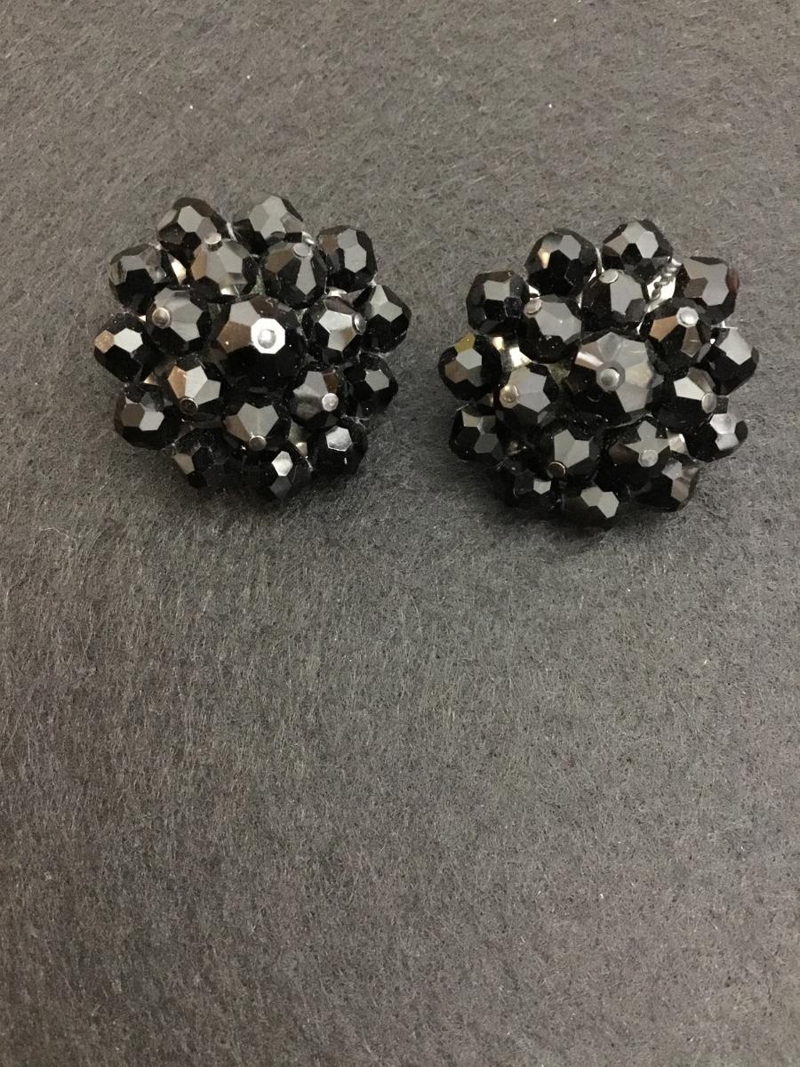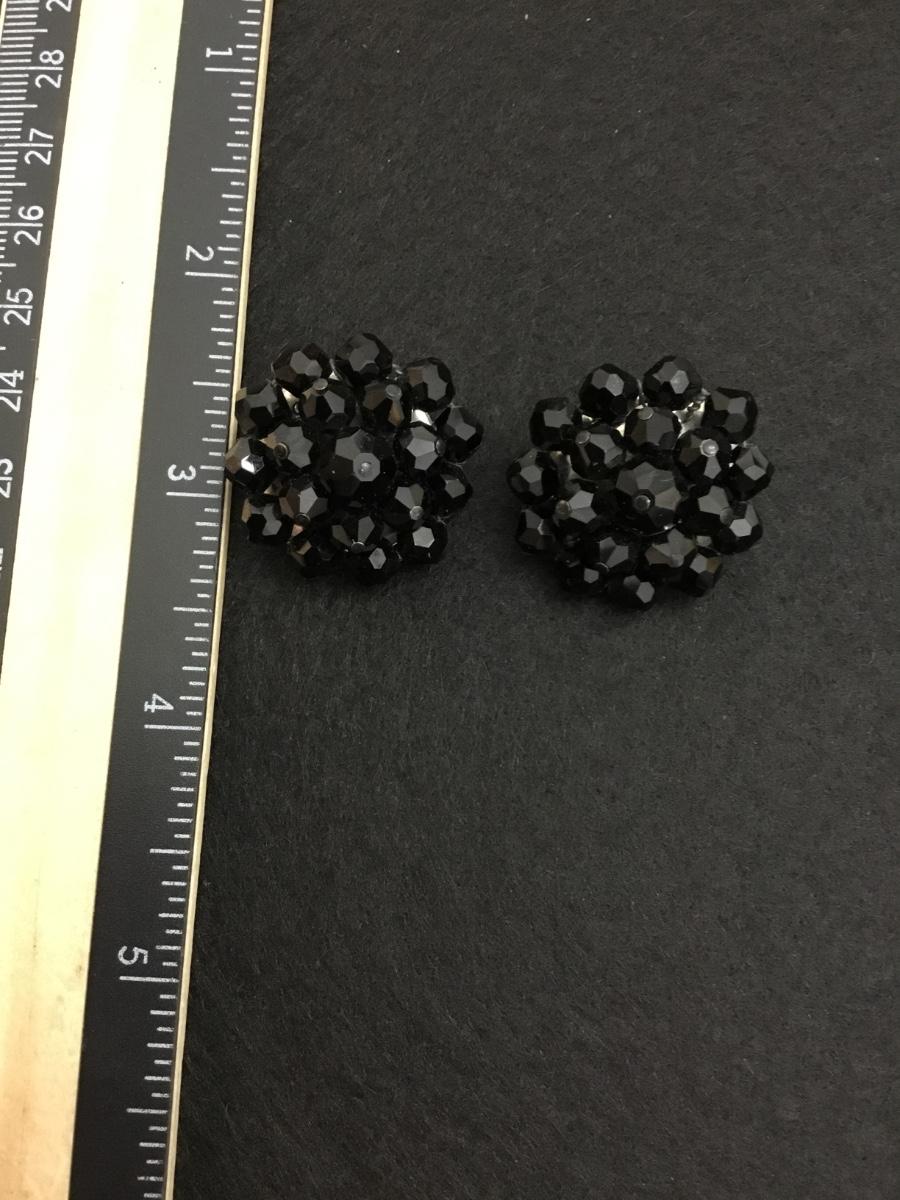 Beautiful, vintage, black glass bead star clip on earrings, silver toned backings