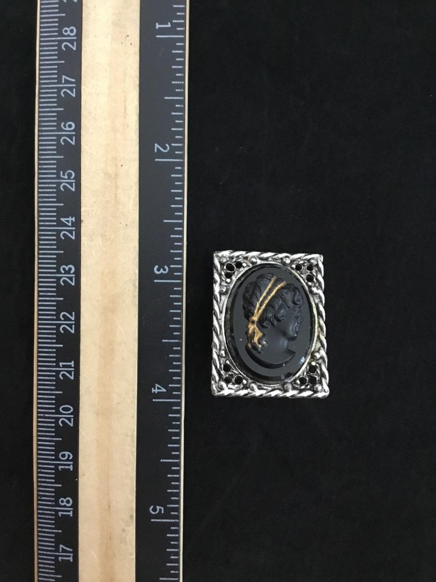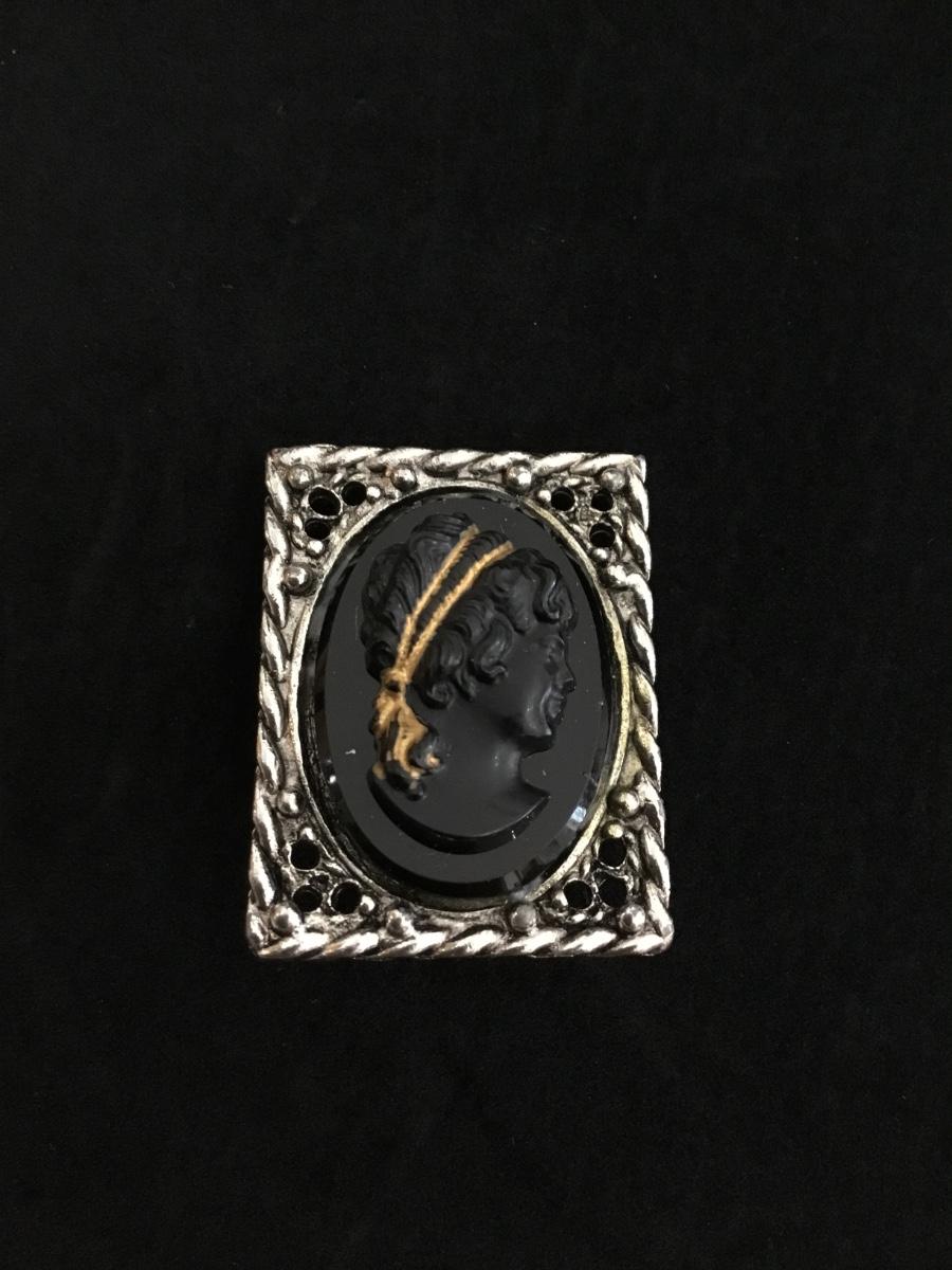 Beautiful vintage black glass cameo brooch