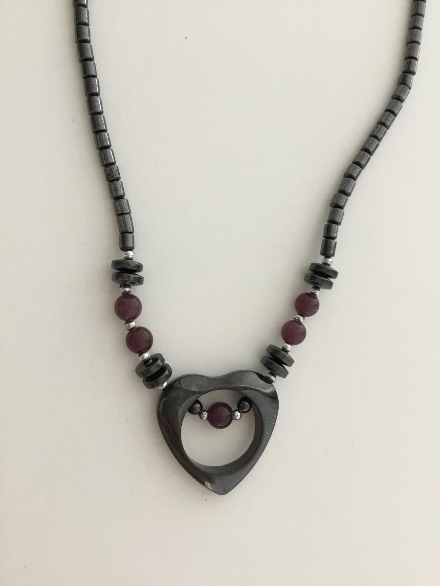 Beautiful vintage black heart dark purple beaded fashion necklace