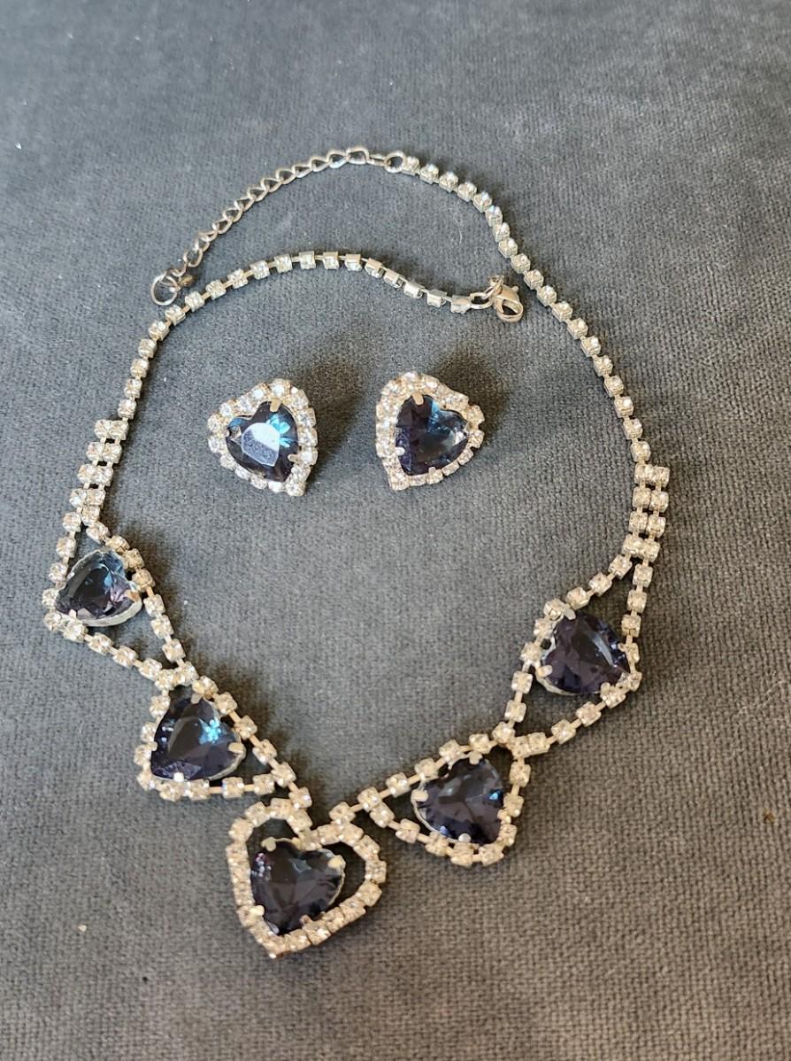 Beautiful Vintage Blue Rhinestone Heart Shape Set