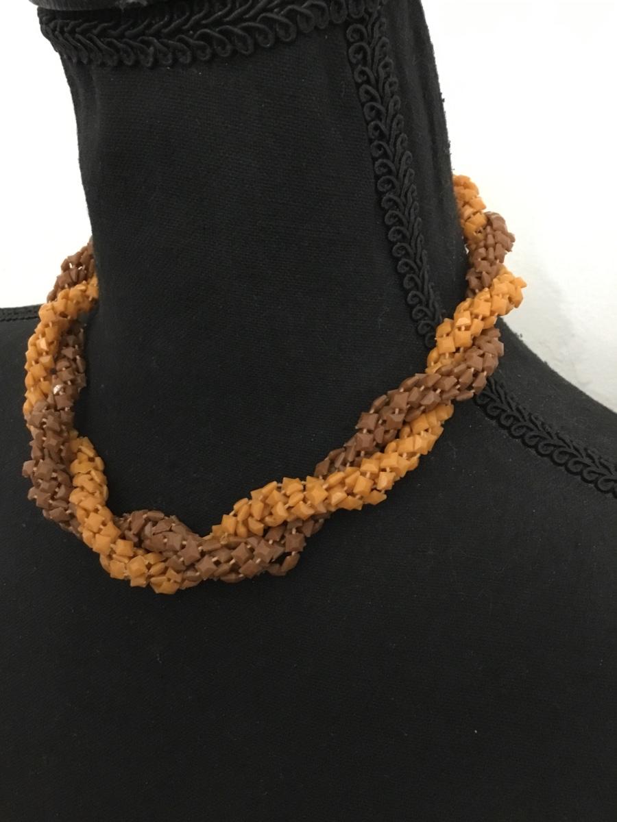 Beautiful vintage, braided Lucite type bead collar statement, necklace