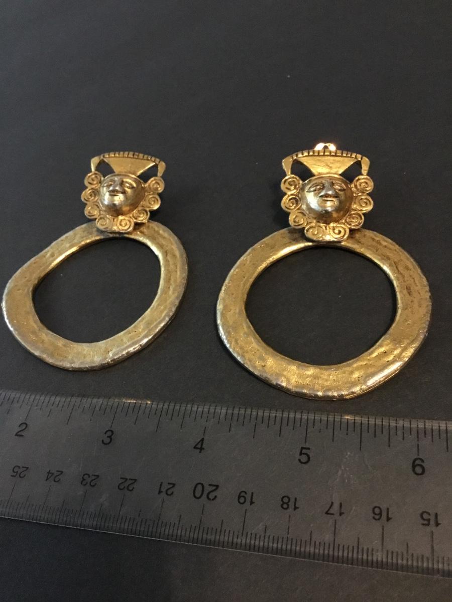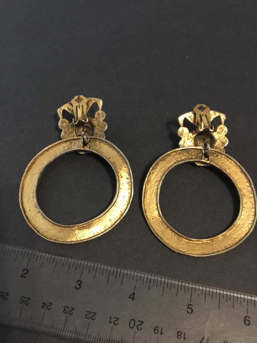 Beautiful, vintage bronze, gold, toned door, knocker statement clip on earrings