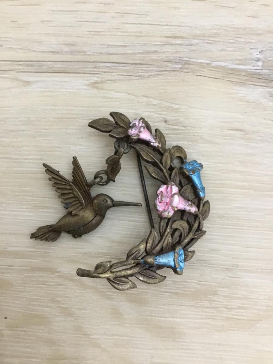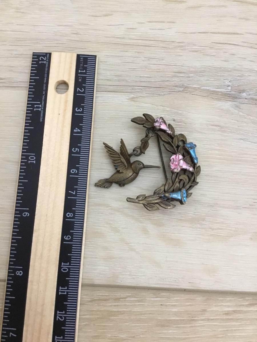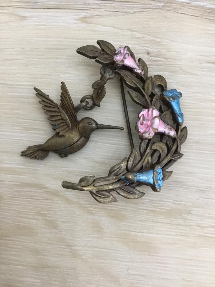 Beautiful, vintage, bronze, toned, JJ hummingbird brooch