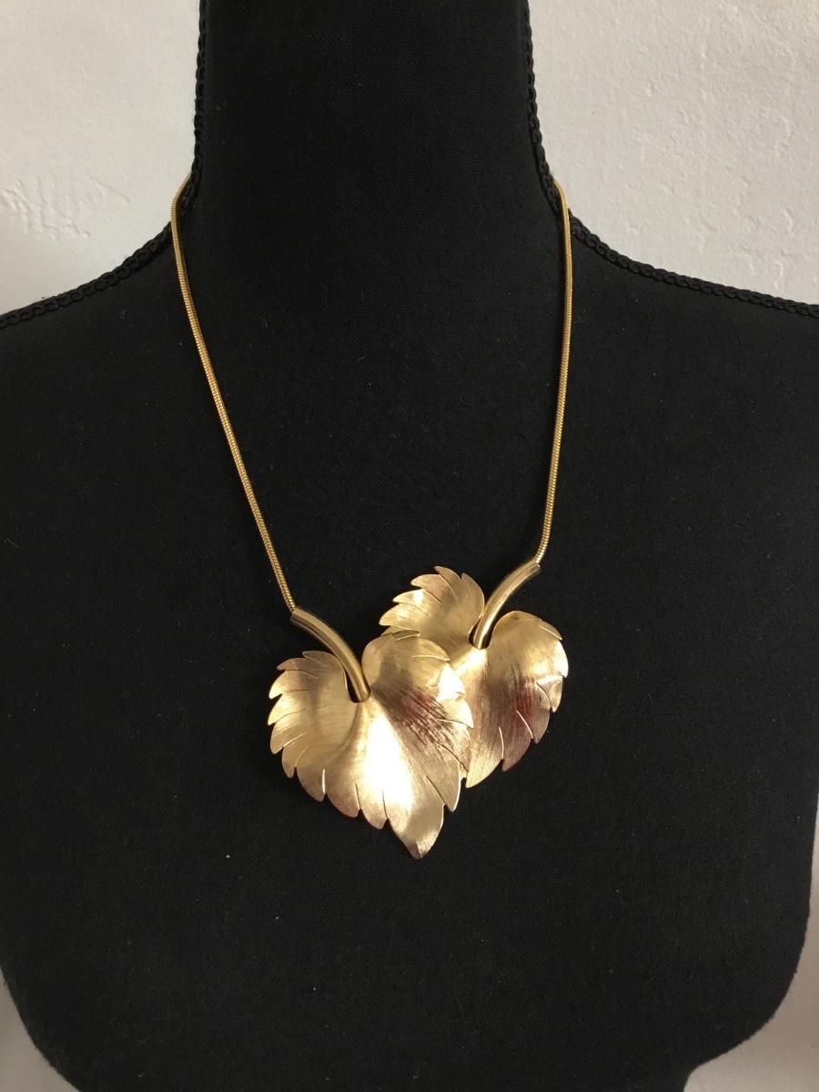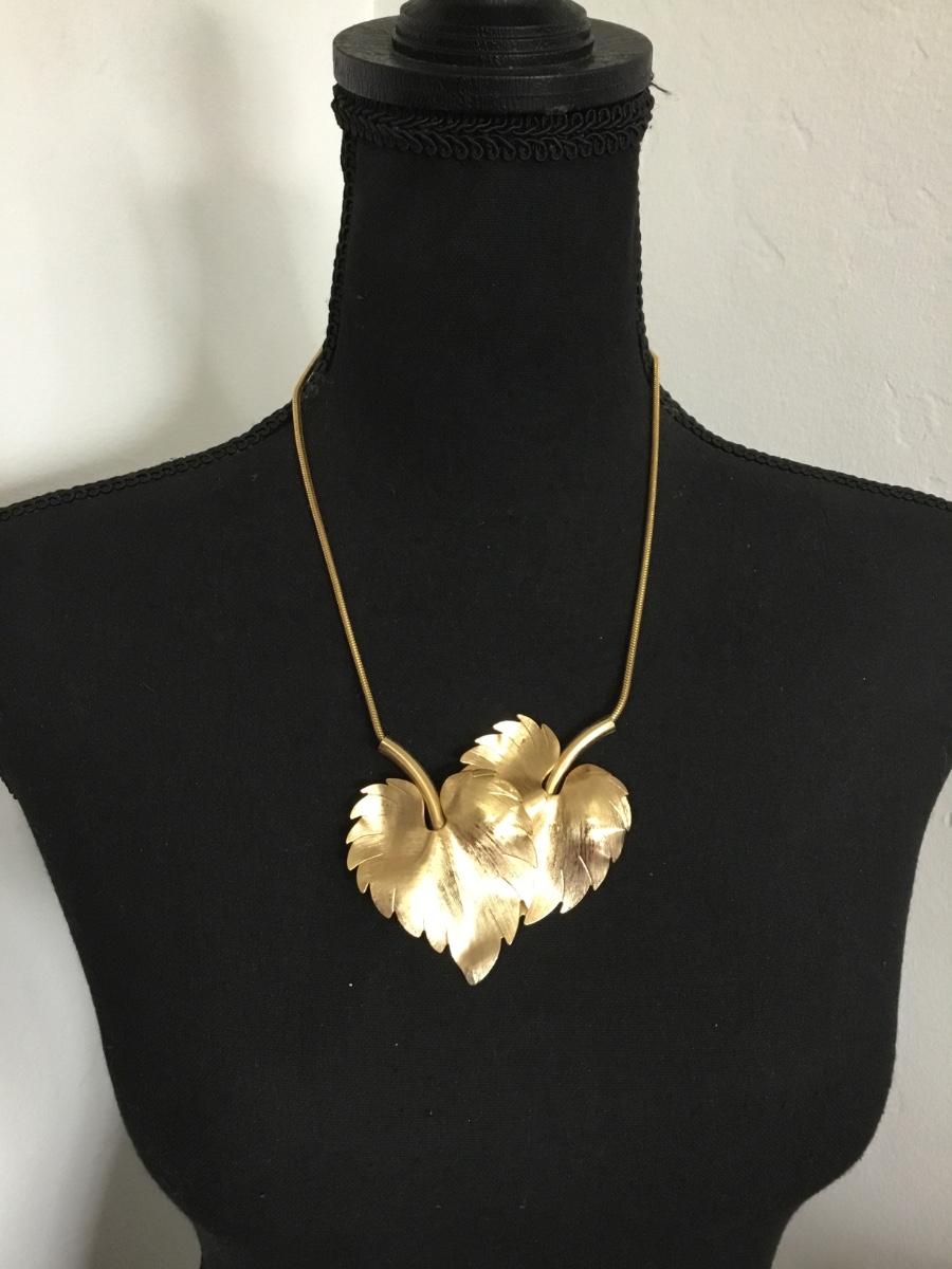 Beautiful, vintage, brushed gold, toned, leave statement necklace