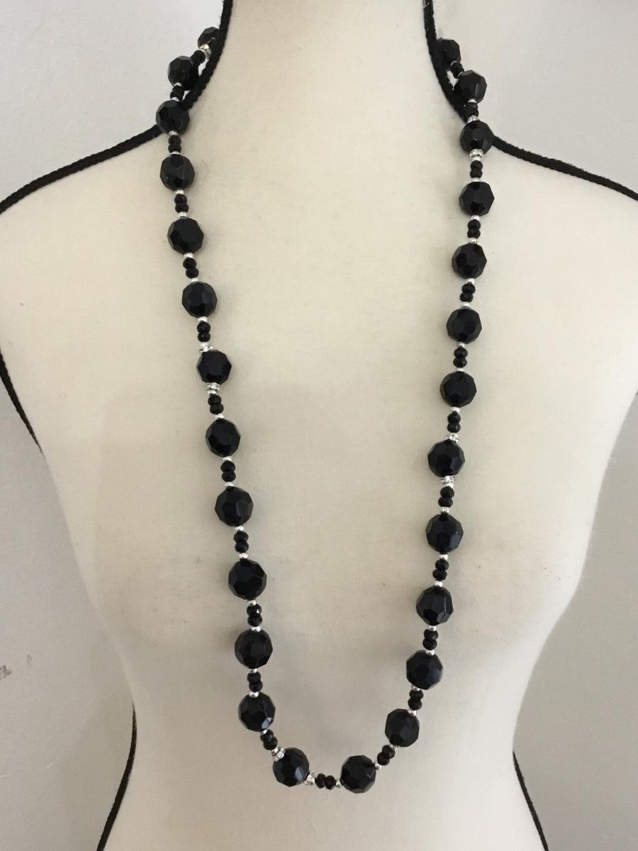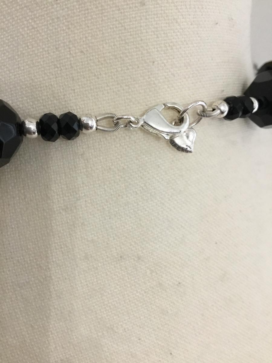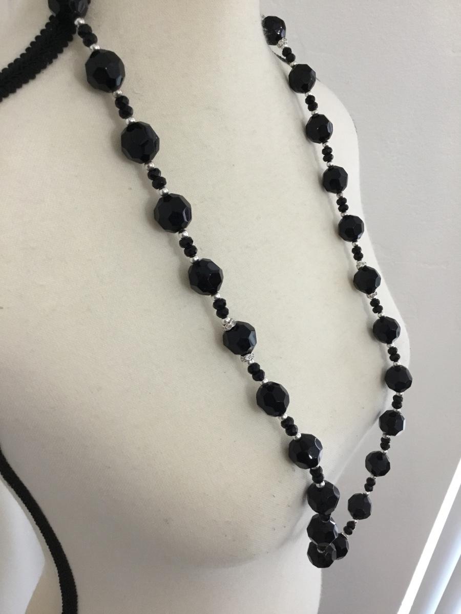 This necklace is made very nicely heavy, chunky black glass. Please see attached photos.