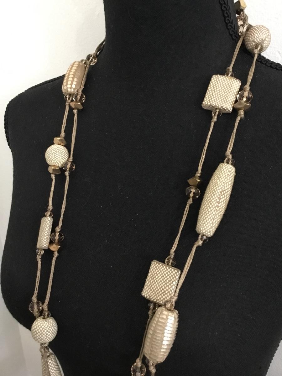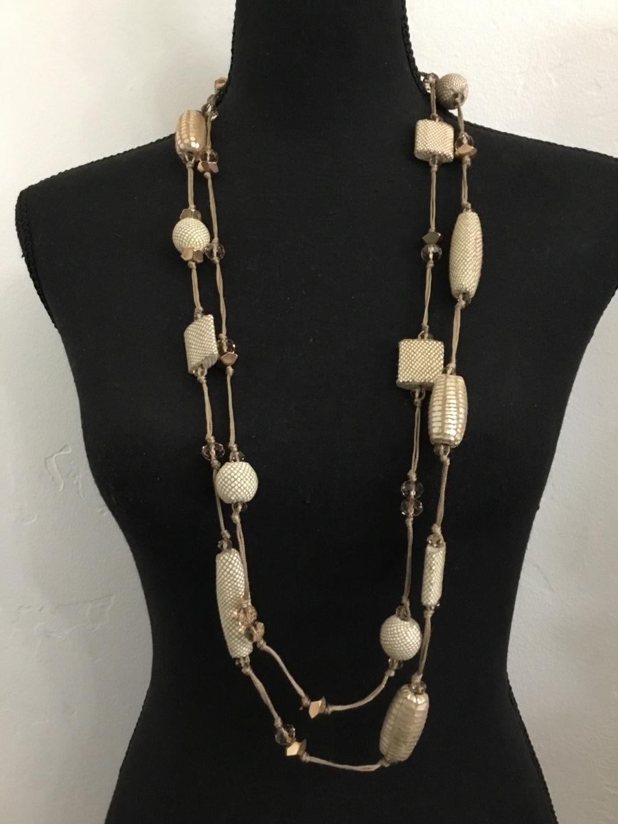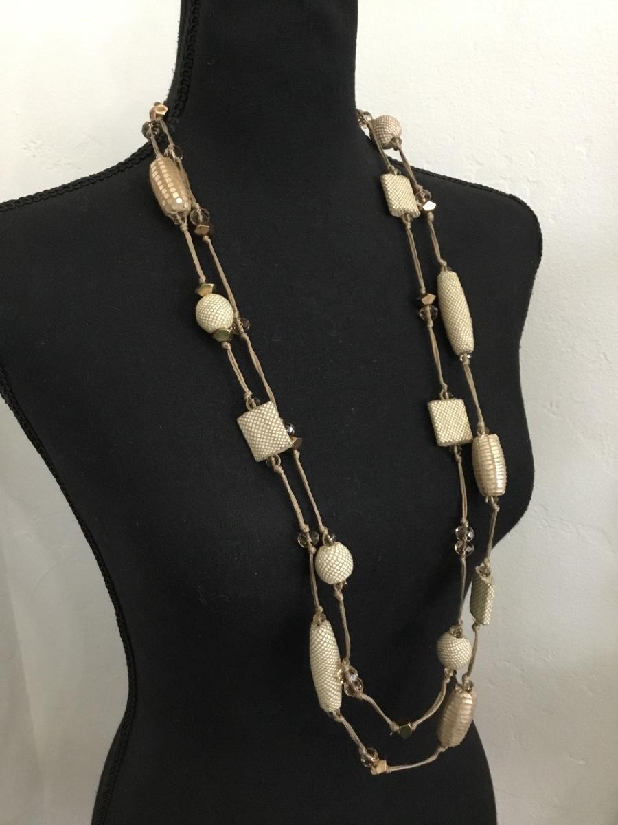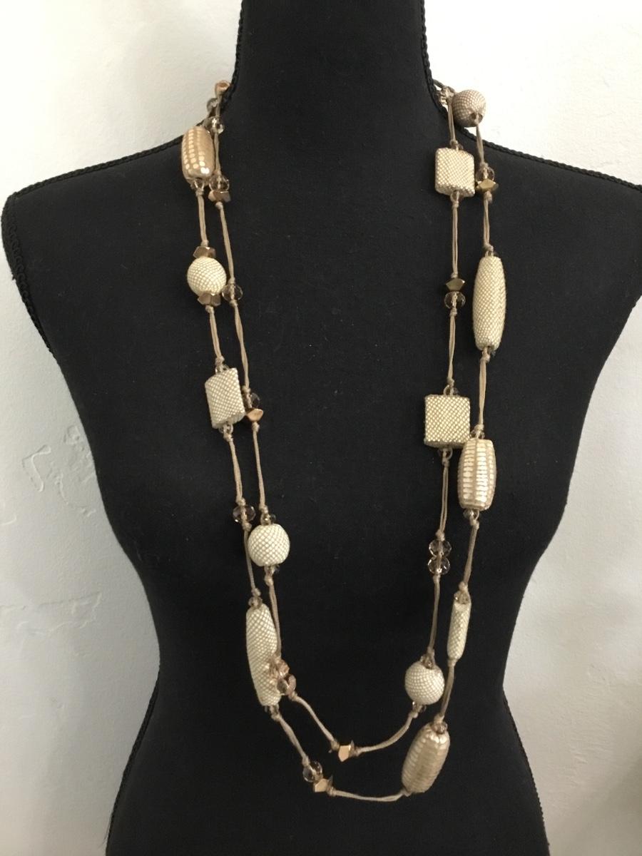 Beautiful vintage, Chicos, beige crystal and faceted glass rhinestone bead, double strand statement, necklace, BoHo style
