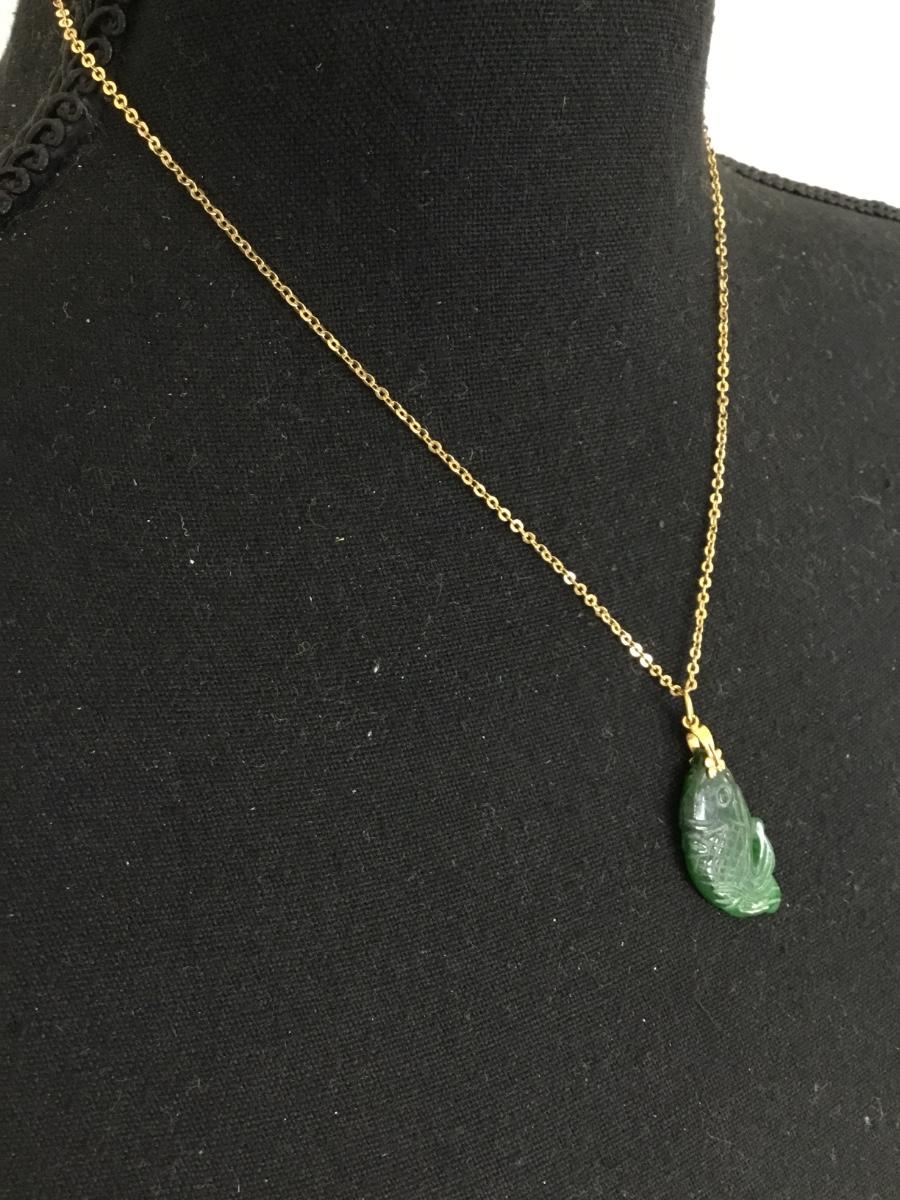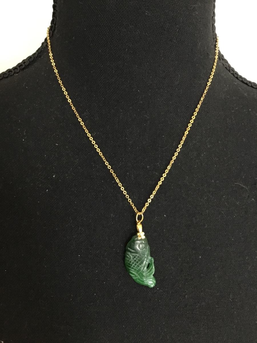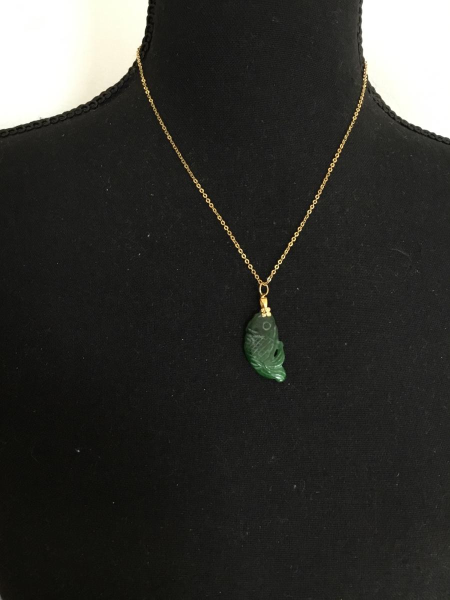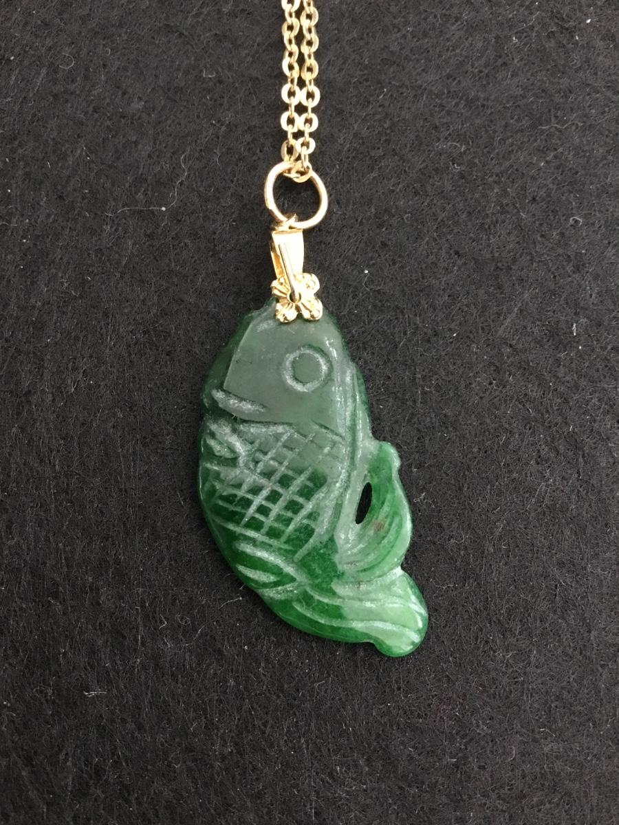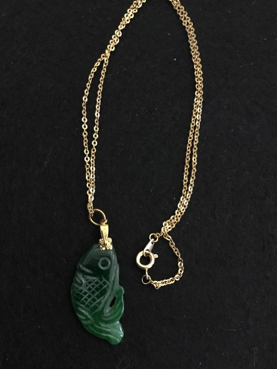 Beautiful, vintage Chinese jade Fish gold tone chain necklace