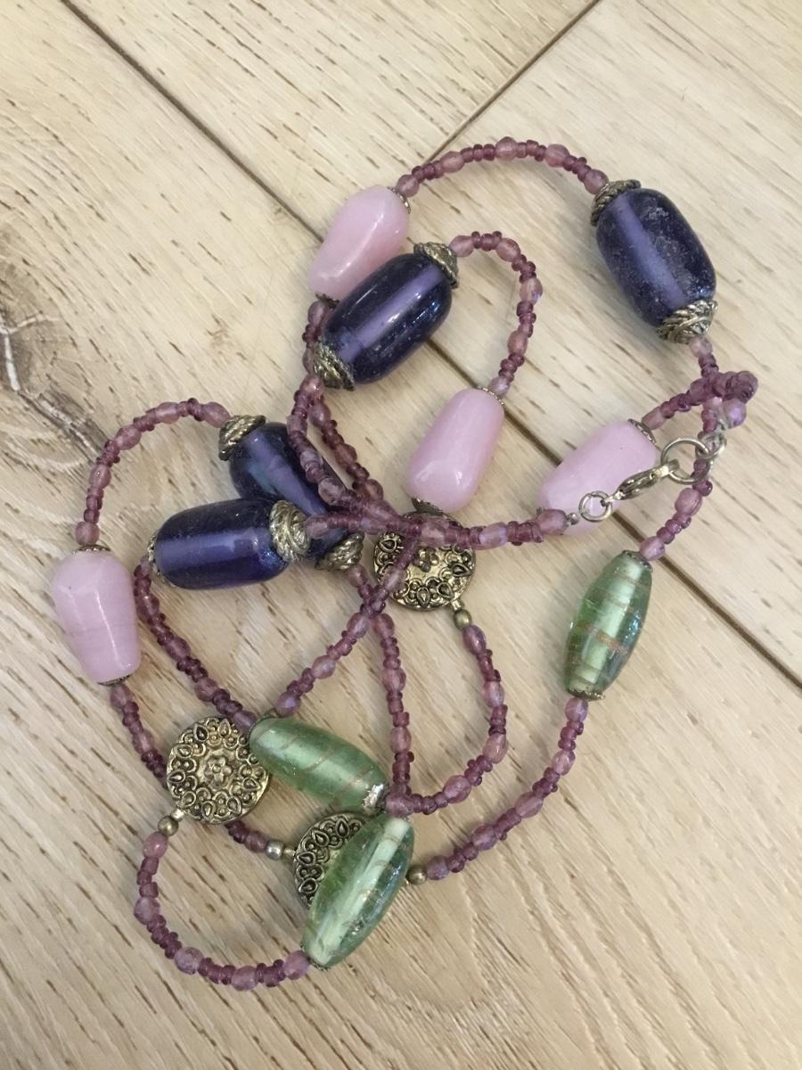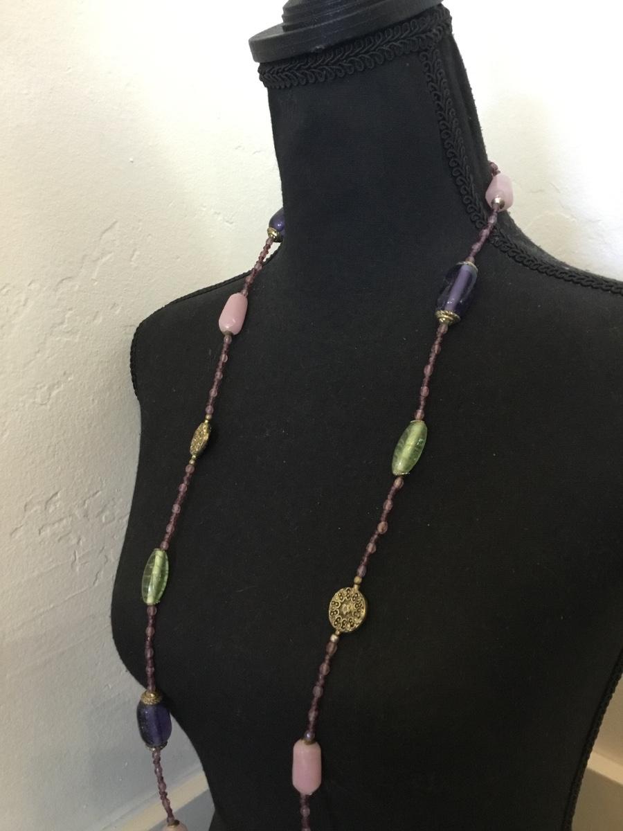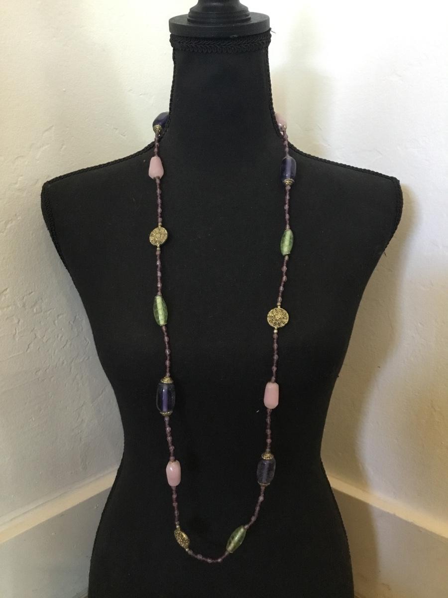 Beautiful vintage, chunky gemstone and glass bead. Long necklace