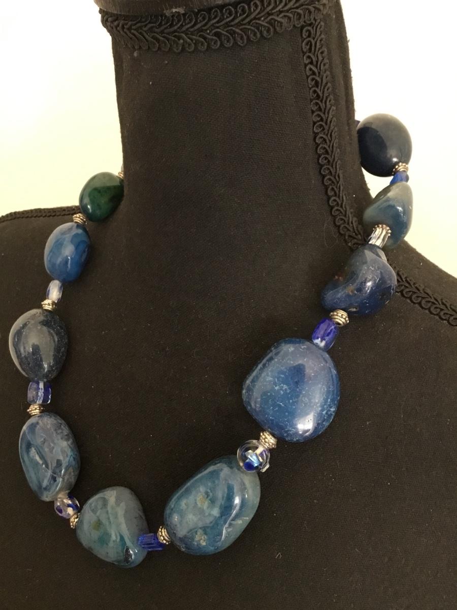 Beautiful, vintage, chunky heavy lapis gemstone necklace, handcrafted