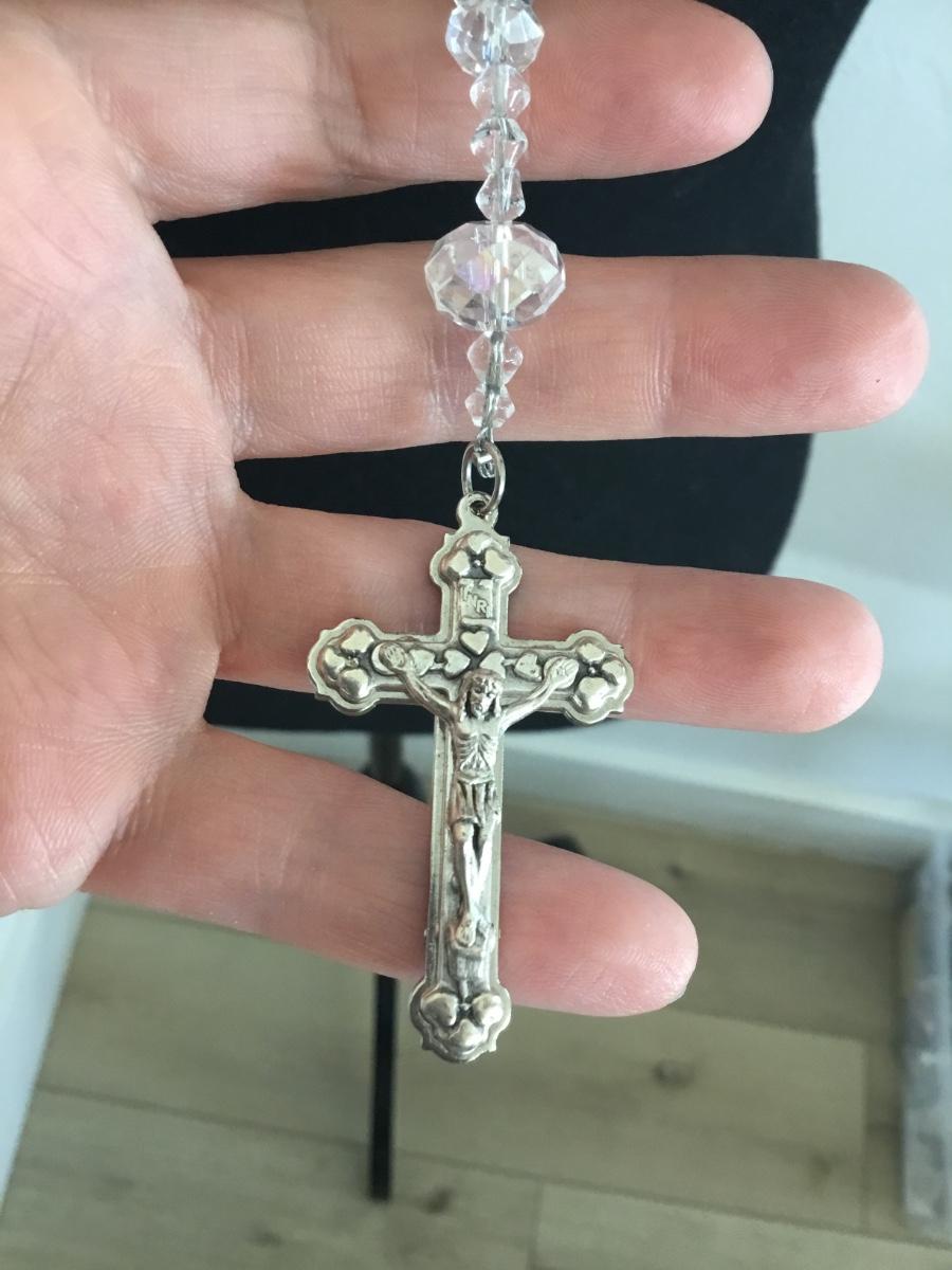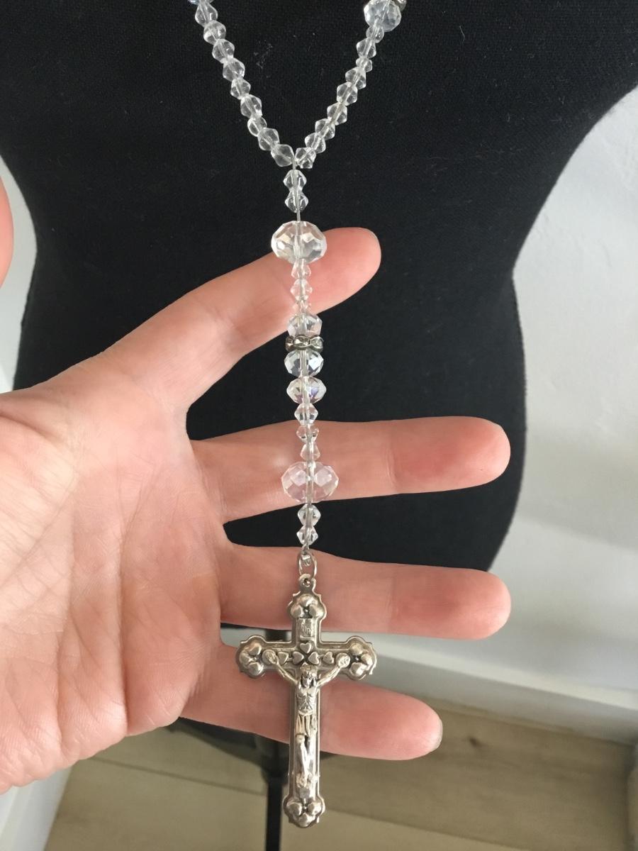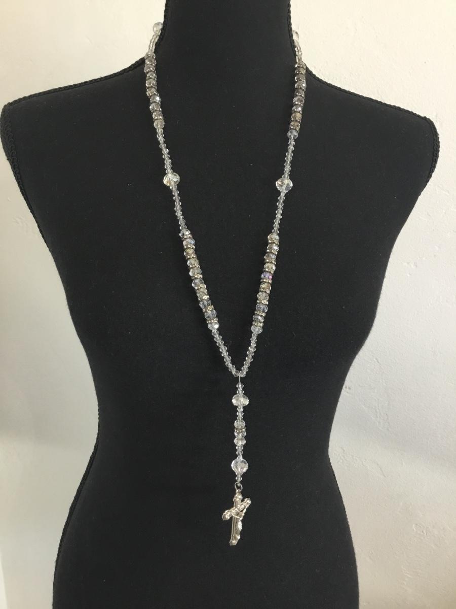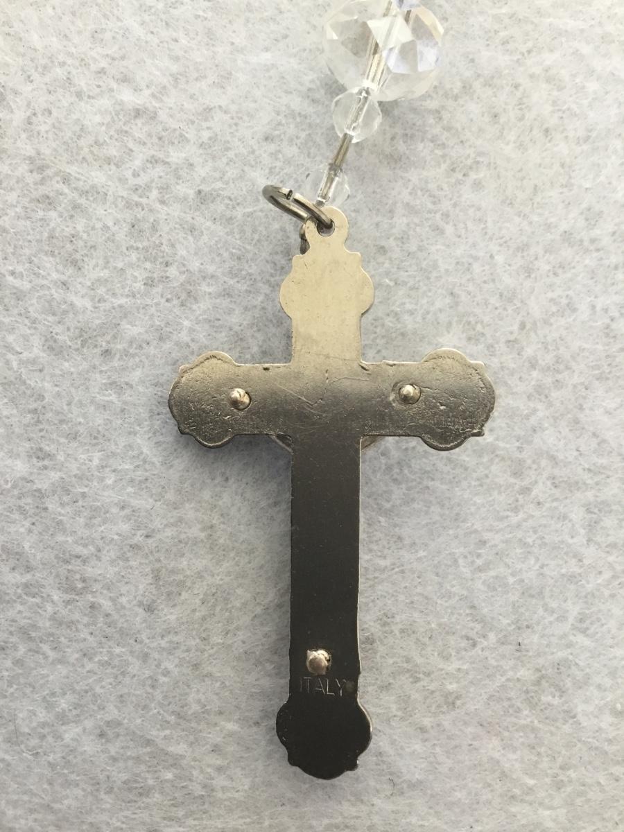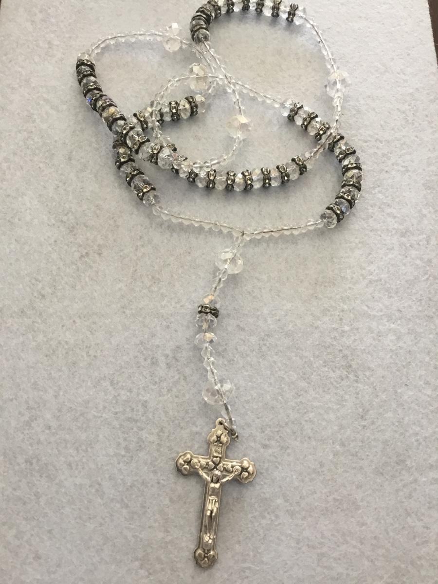 Beautiful, vintage, crystal bead and silver tone, rhinestone spacers, and silver tone Italy cross pendant