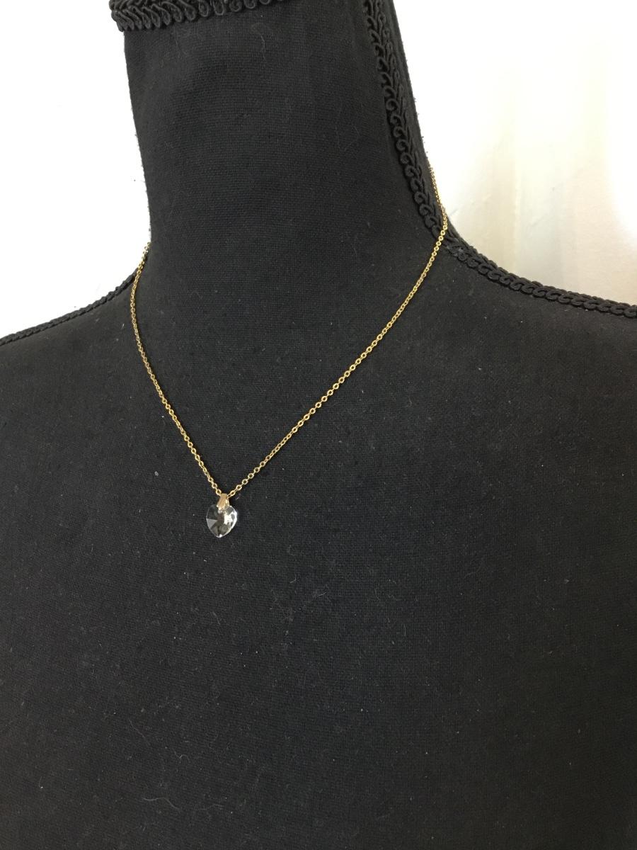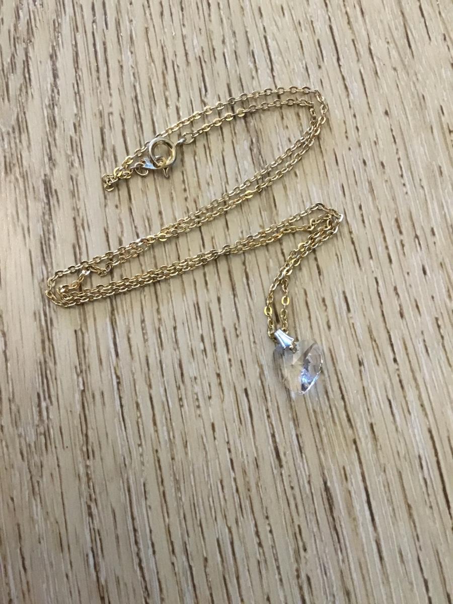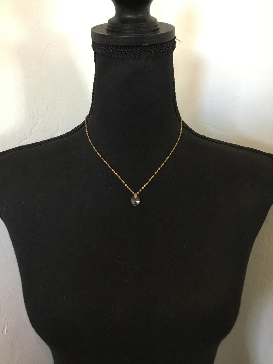 Beautiful, vintage, crystal heart pendant in gold tone chain necklace