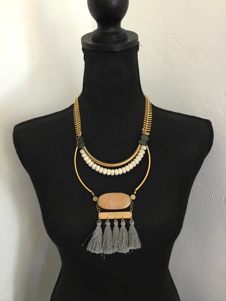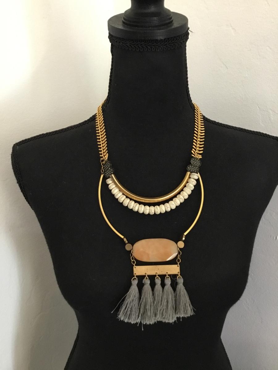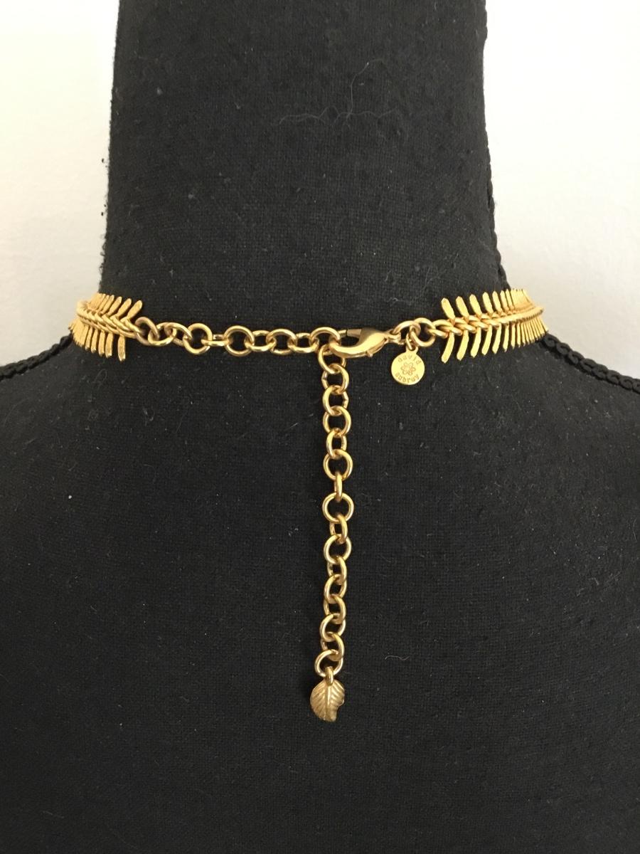Beautiful vintage David Aubrey, 18 karat gold plated, brass class with fish bone chain Beautiful statement necklace