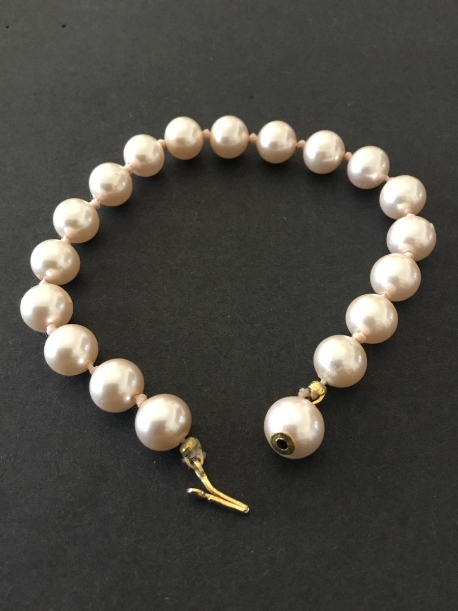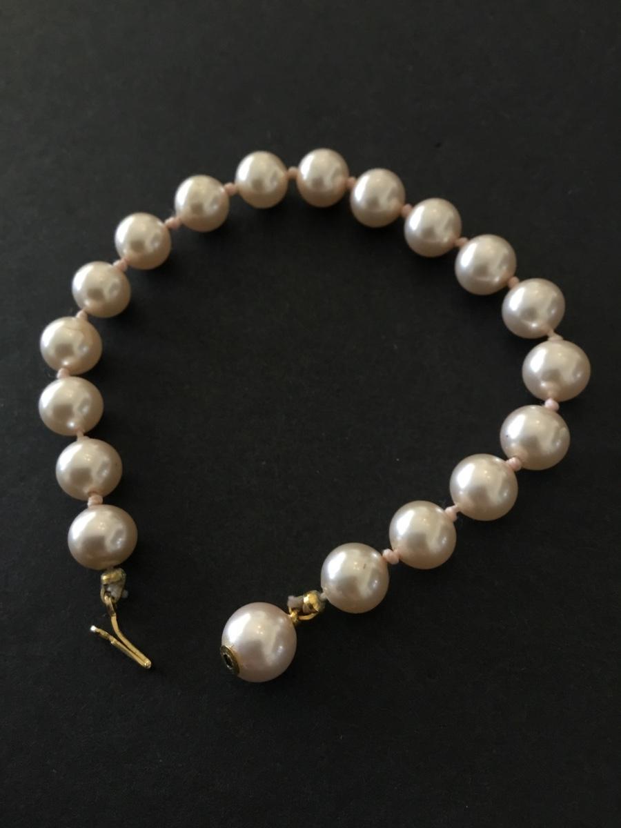 Beautiful vintage, double nodded, faux, pearl glass, bead bracelet, gold toned