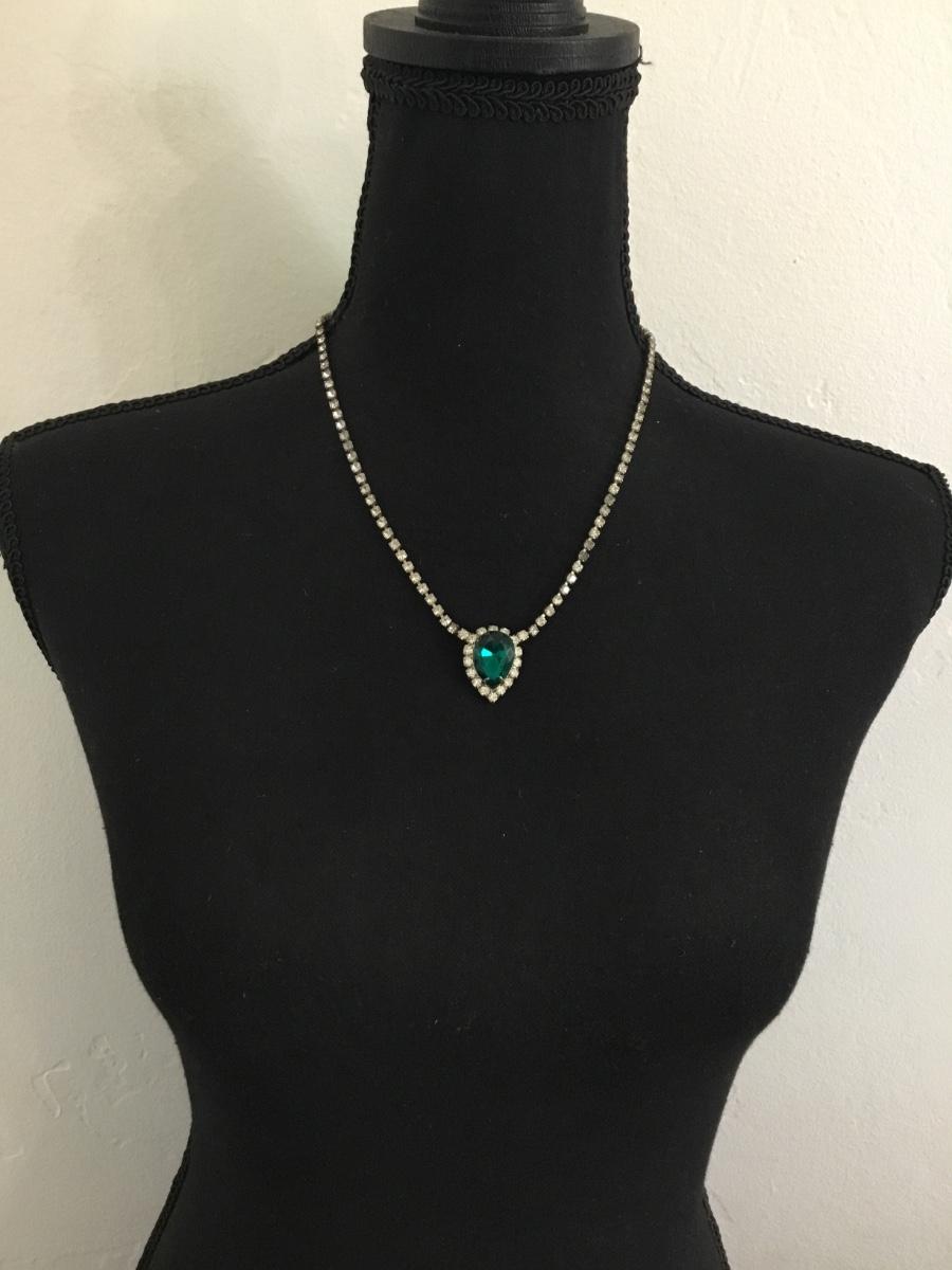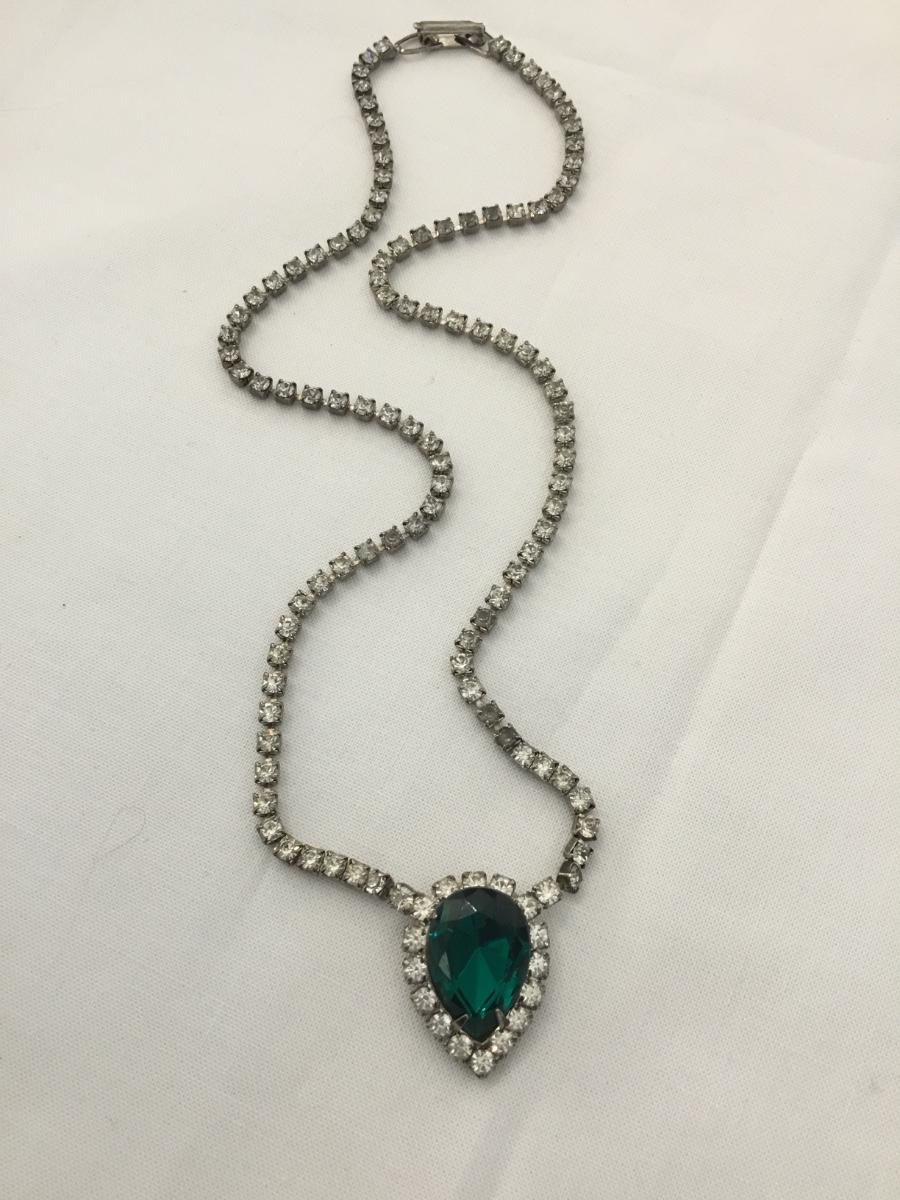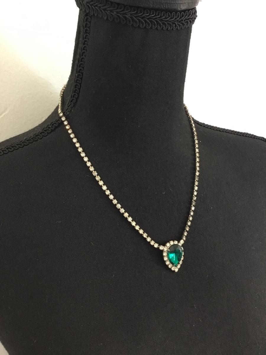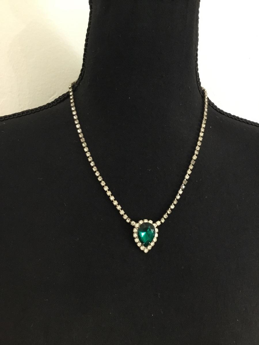 Beautiful, vintage, emerald rhinestone teardrop necklace