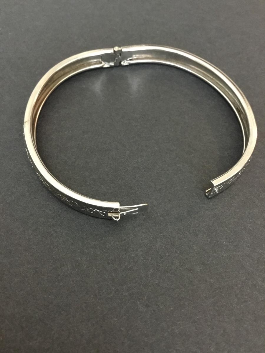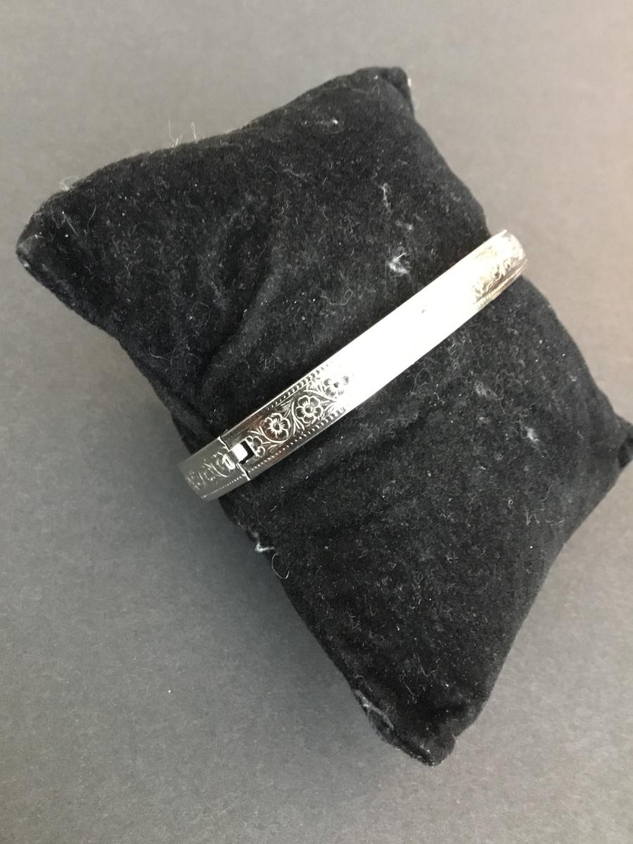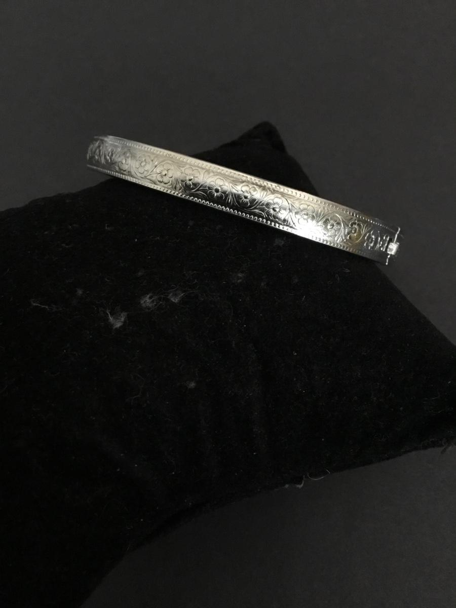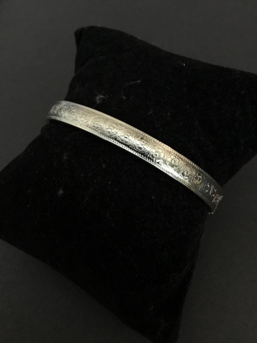 Beautiful, vintage etched flower, locking hinged bracelet very pretty excellent condition silver toned