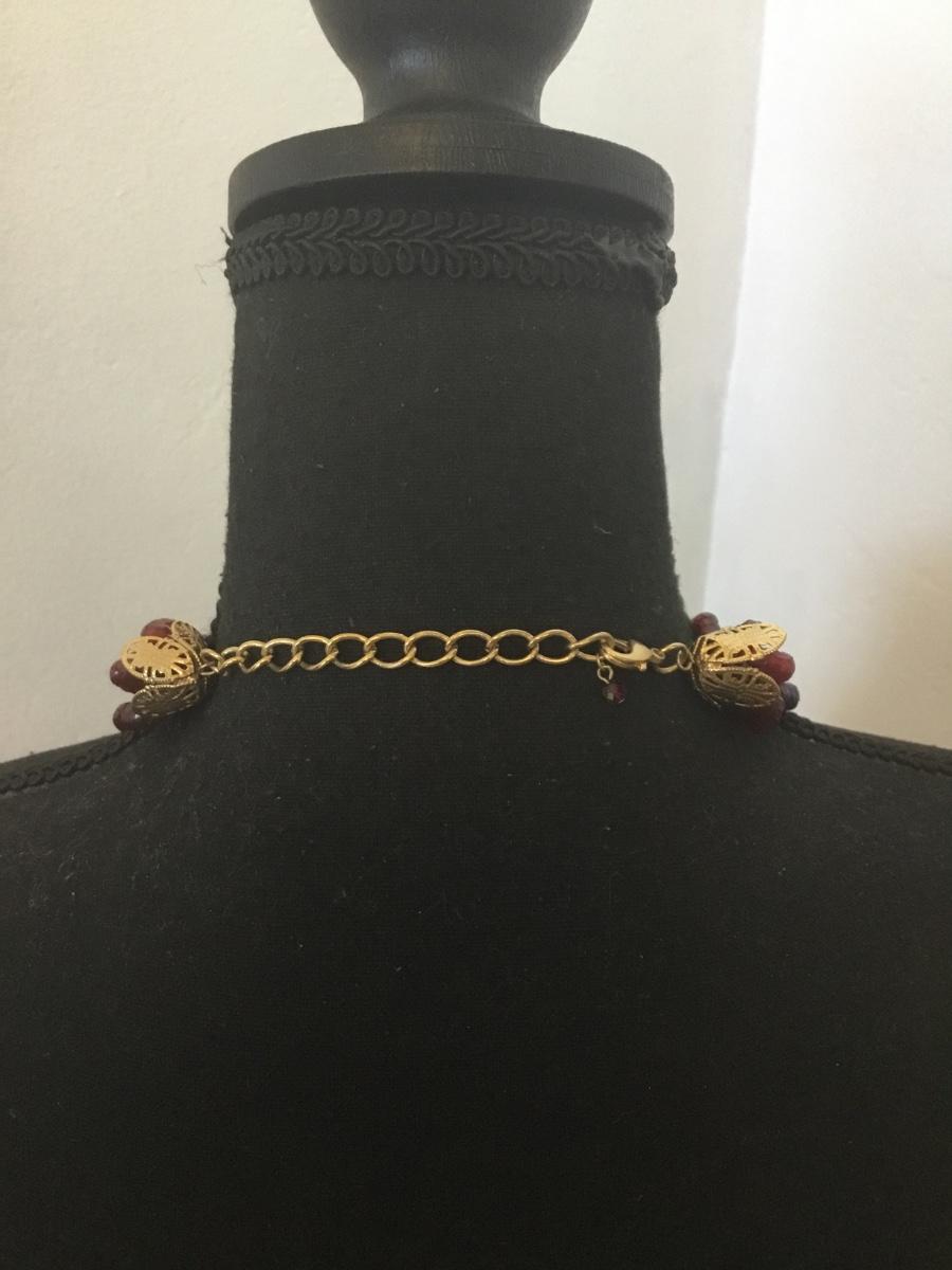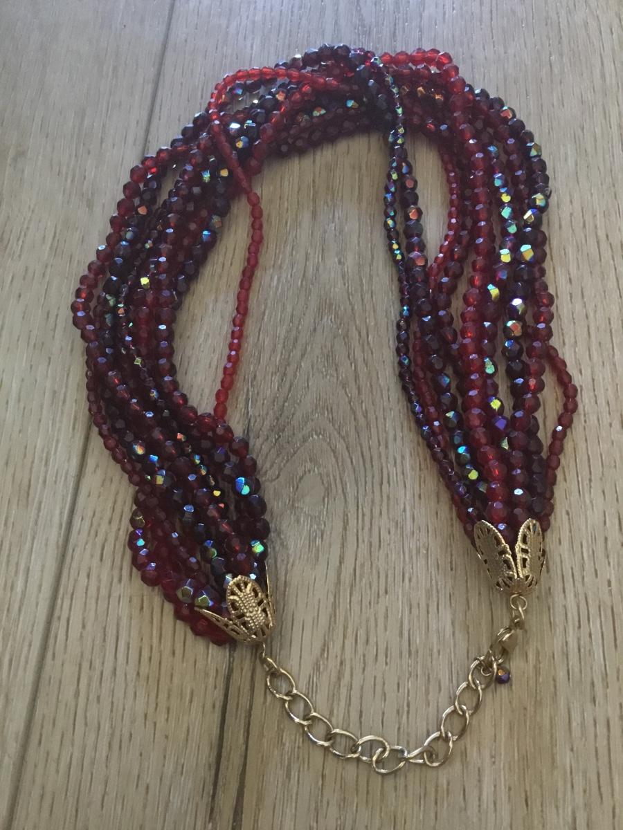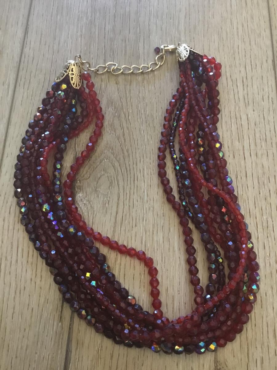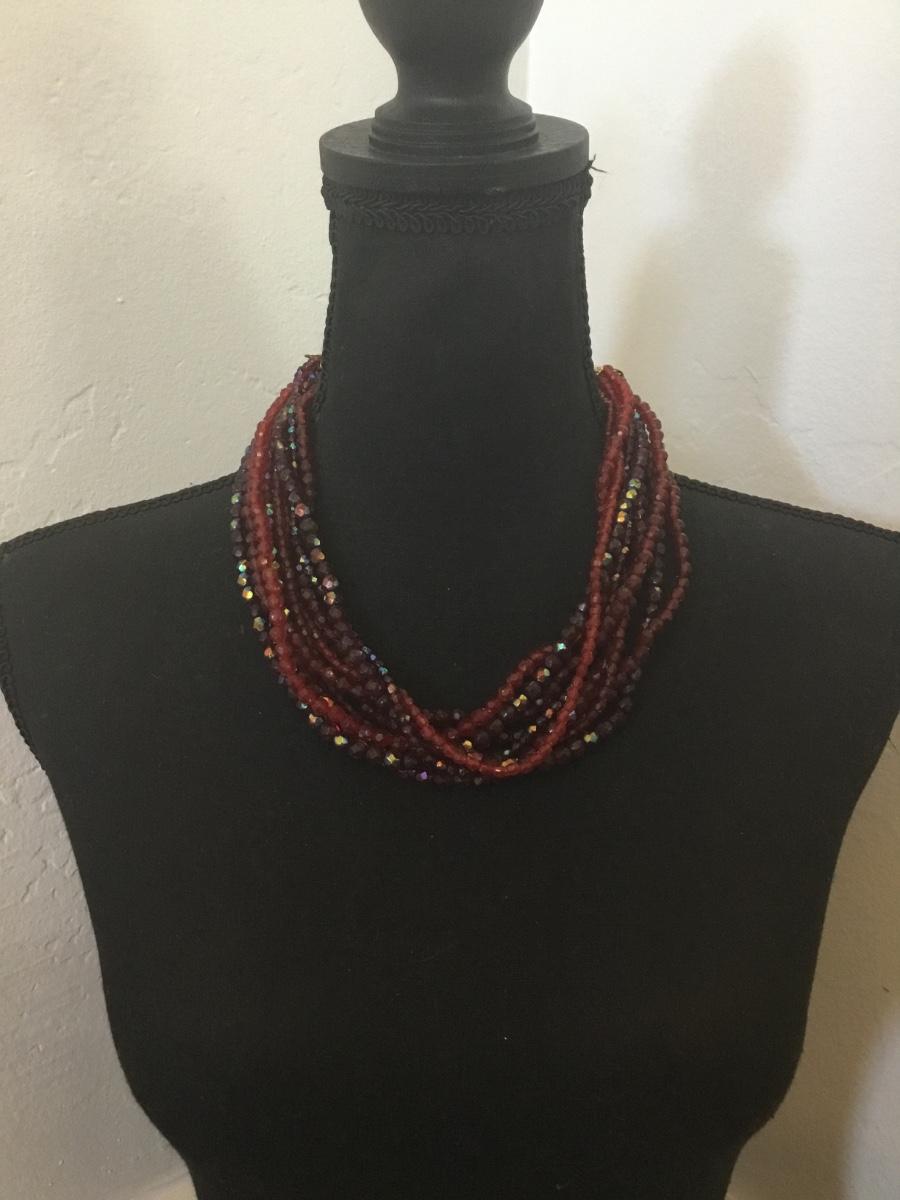 Beautiful, vintage, faux, glass, dark cherry, red beaded statement, necklace, multi strand
