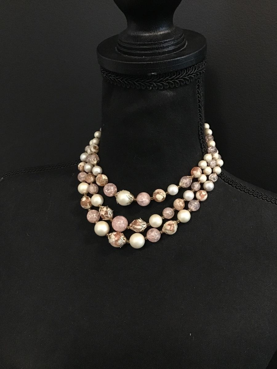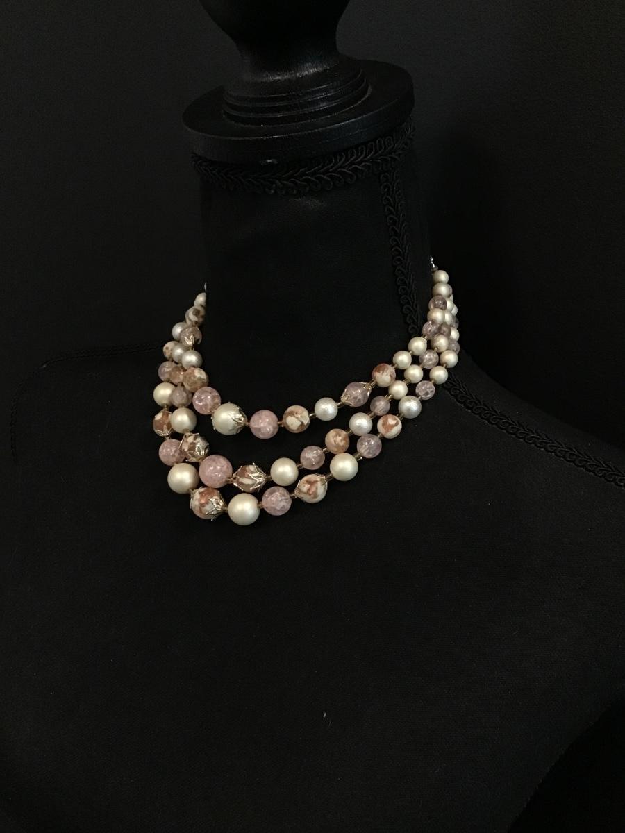 Beautiful, vintage, faux, pearl, silver toned, multistrand statement, necklace