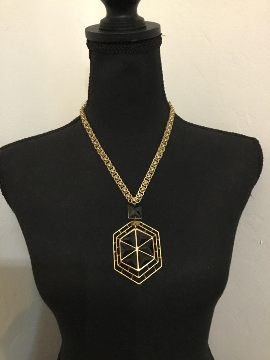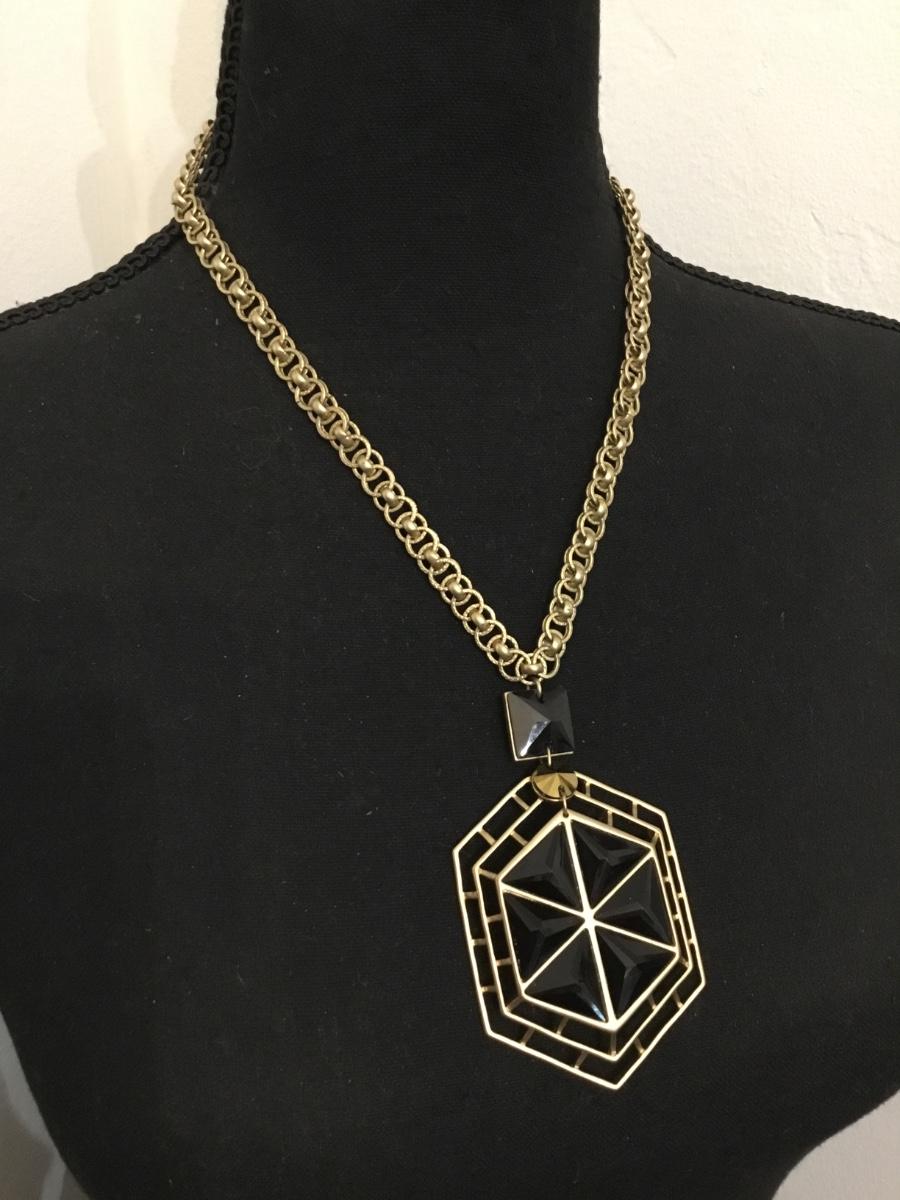 Beautiful vintage Givenchy, large gold tone, black enamel statement, necklace
