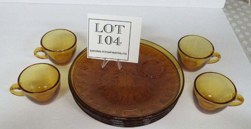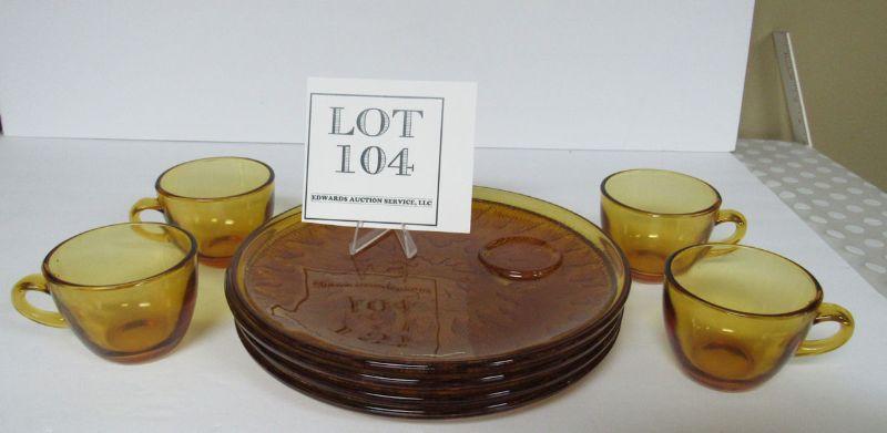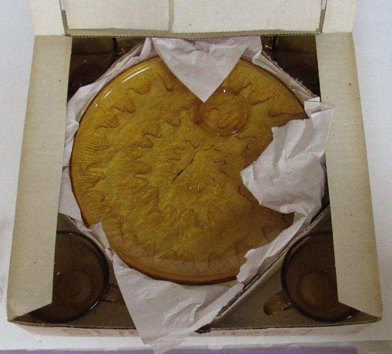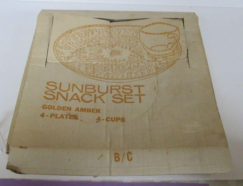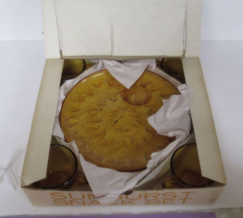 Nice Mid Century Sunburst Snack Set in Original Box, Indiana Glass Co