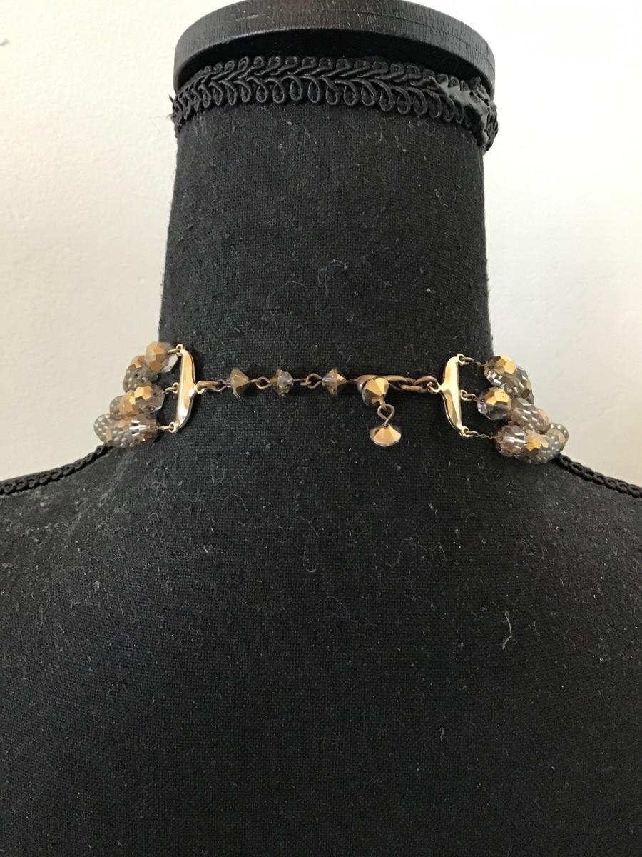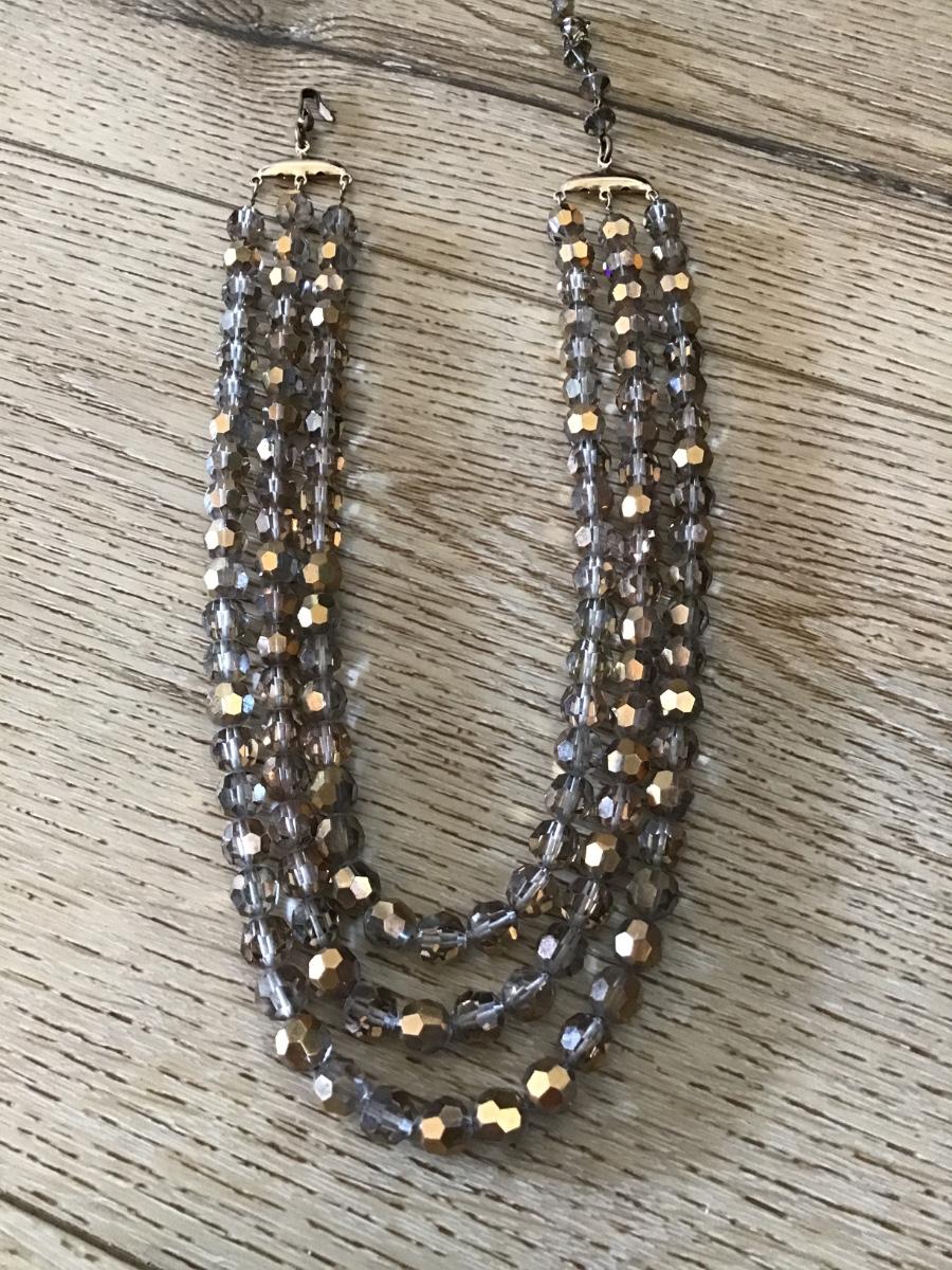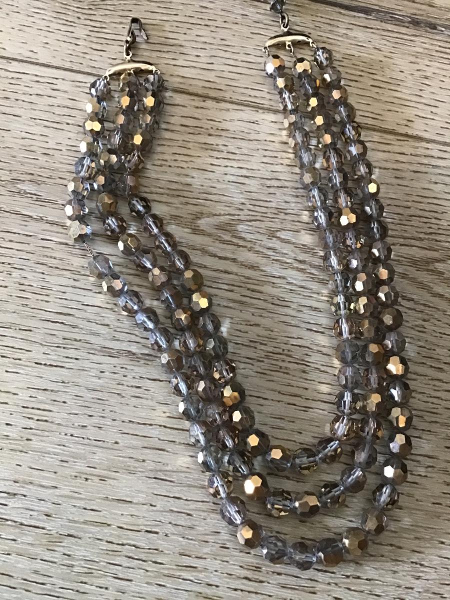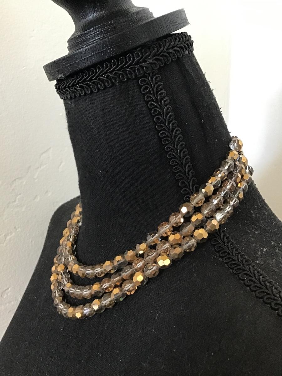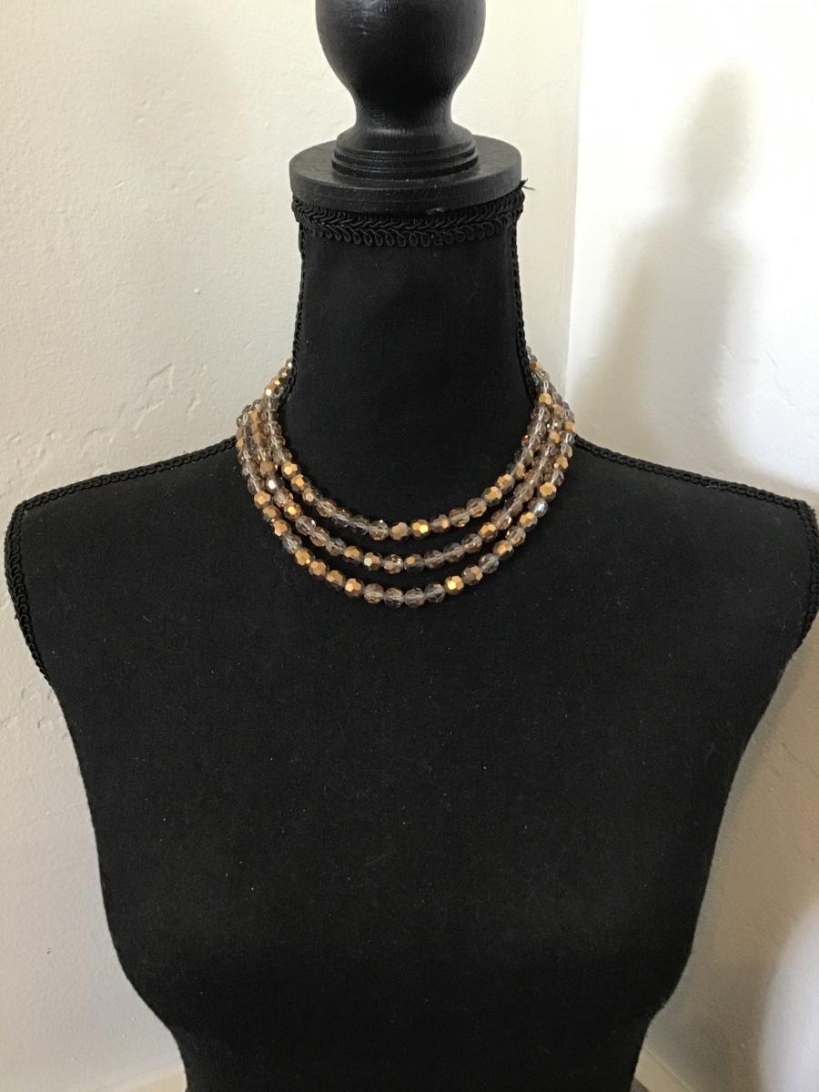 Beautiful Vintage gold and smoky, faceted, crystal or glass bead, multistrand statement, necklace