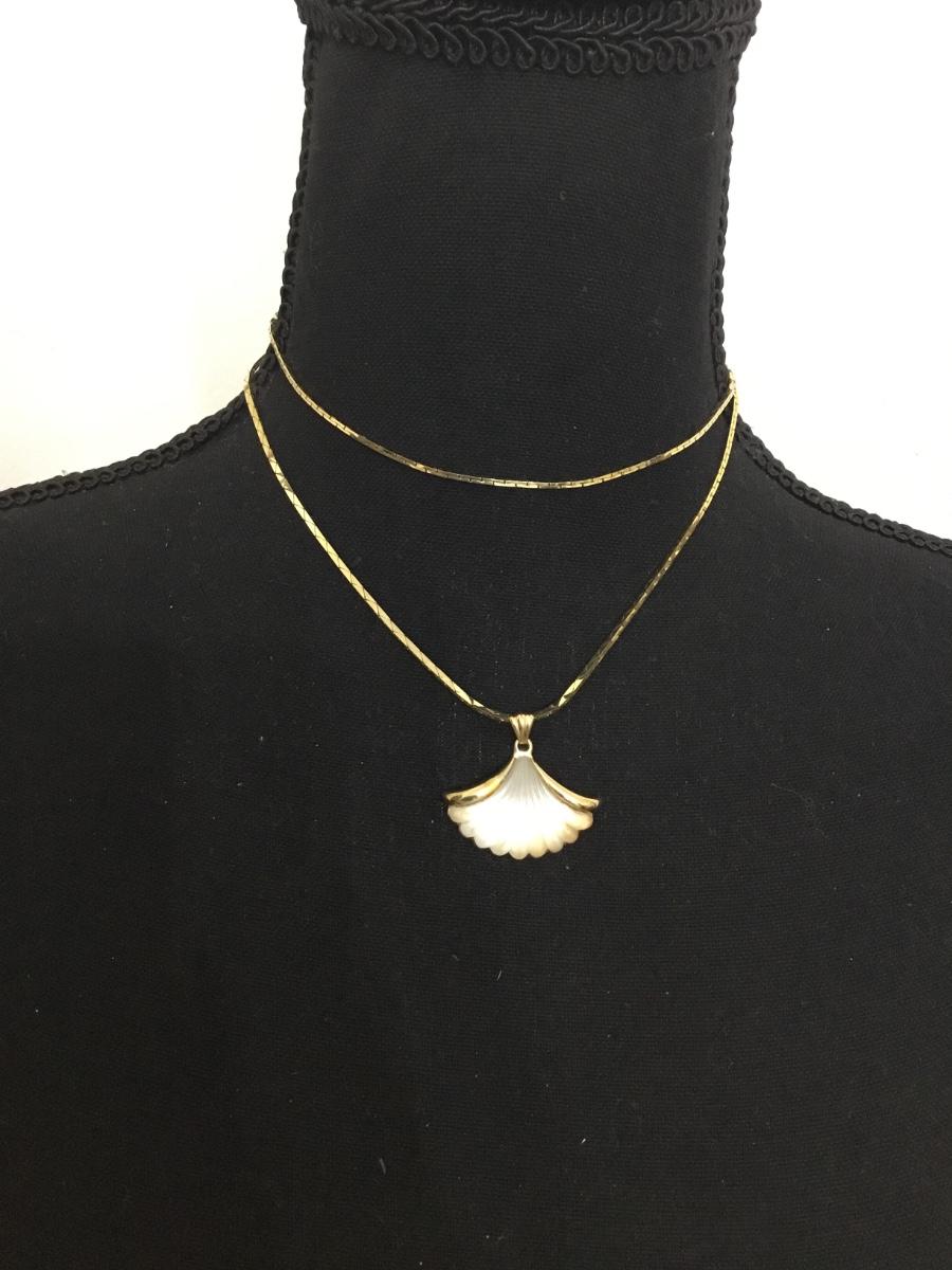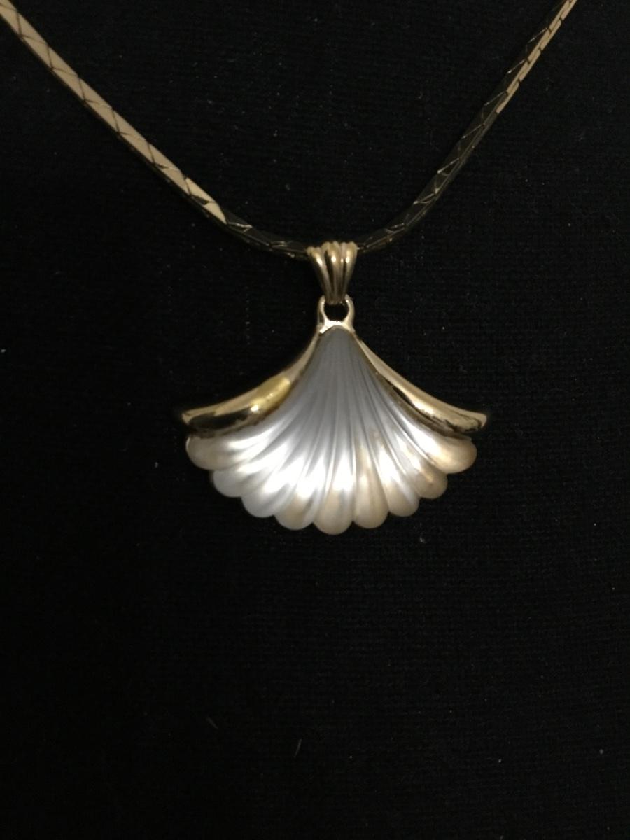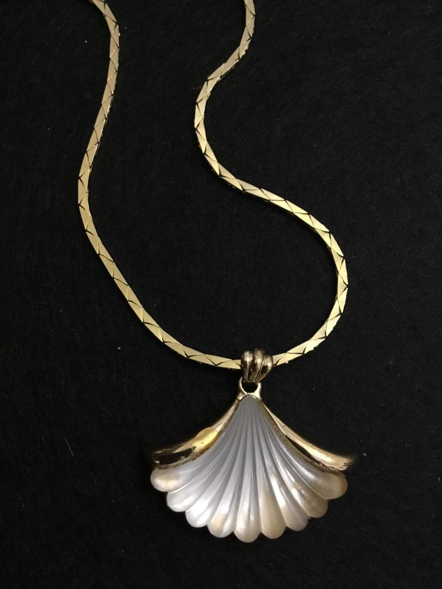 Beautiful vintage, gold tone, Avon shell pendant, and necklace