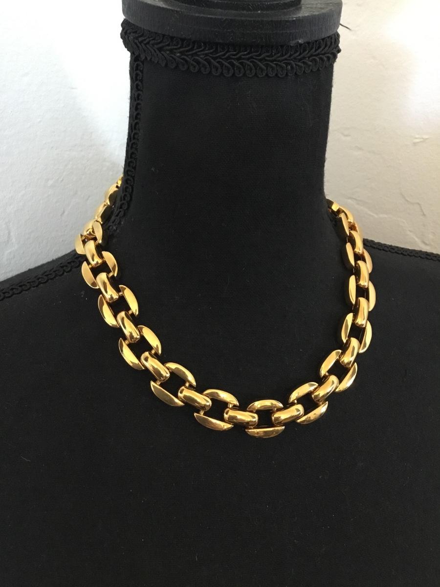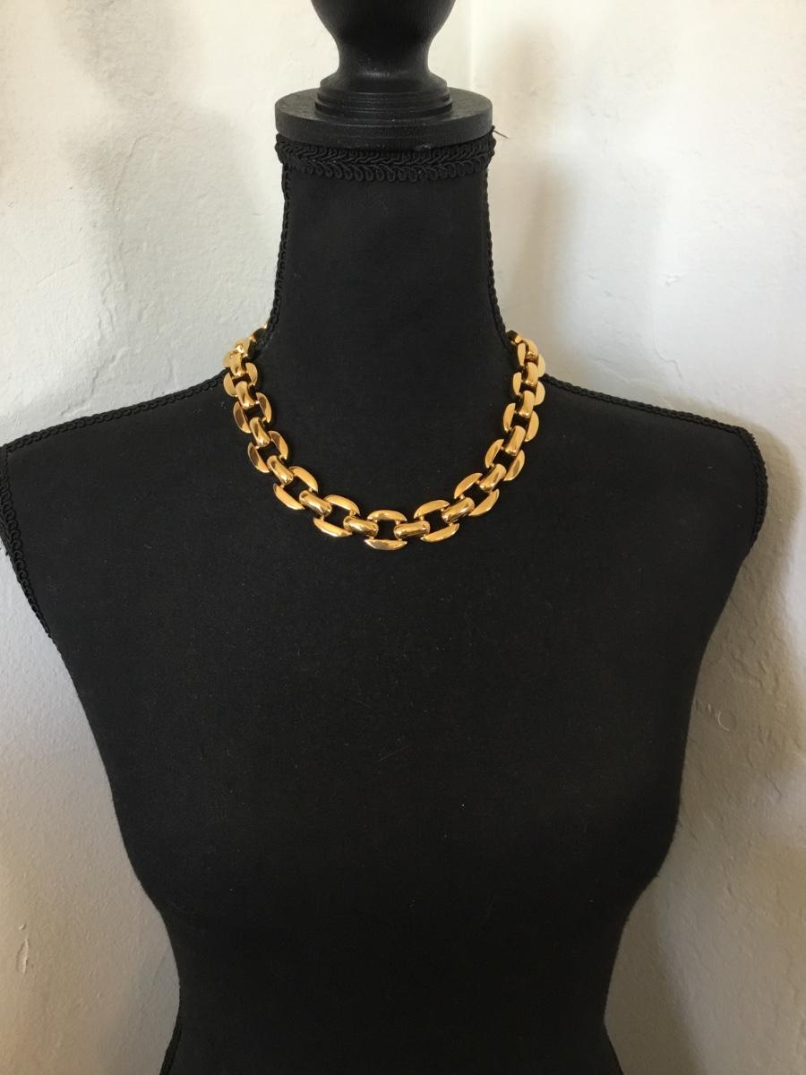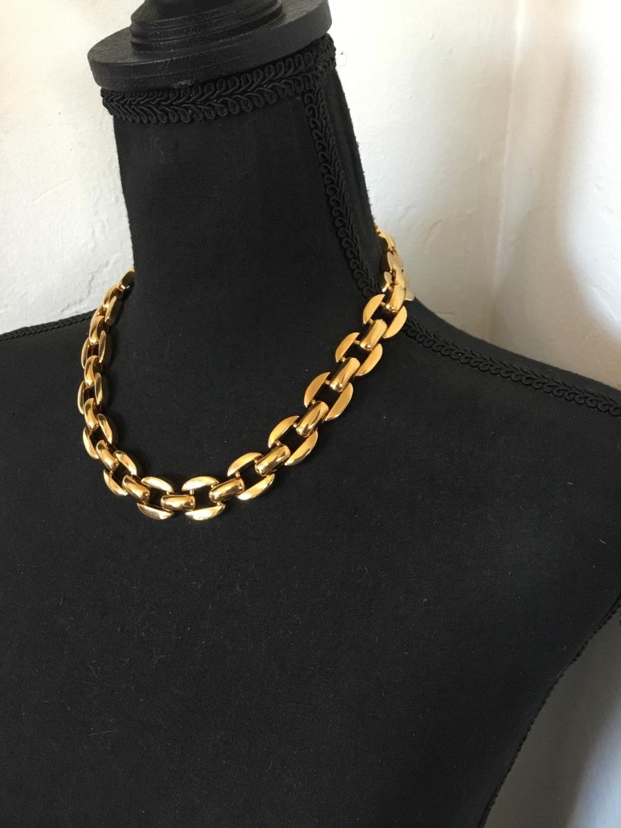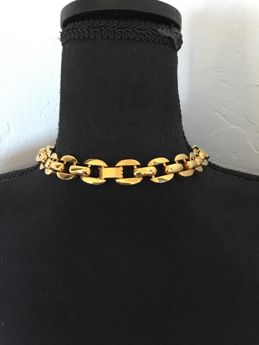 Beautiful vintage, gold tone, chain link, statement collar necklace. Excellent condition.