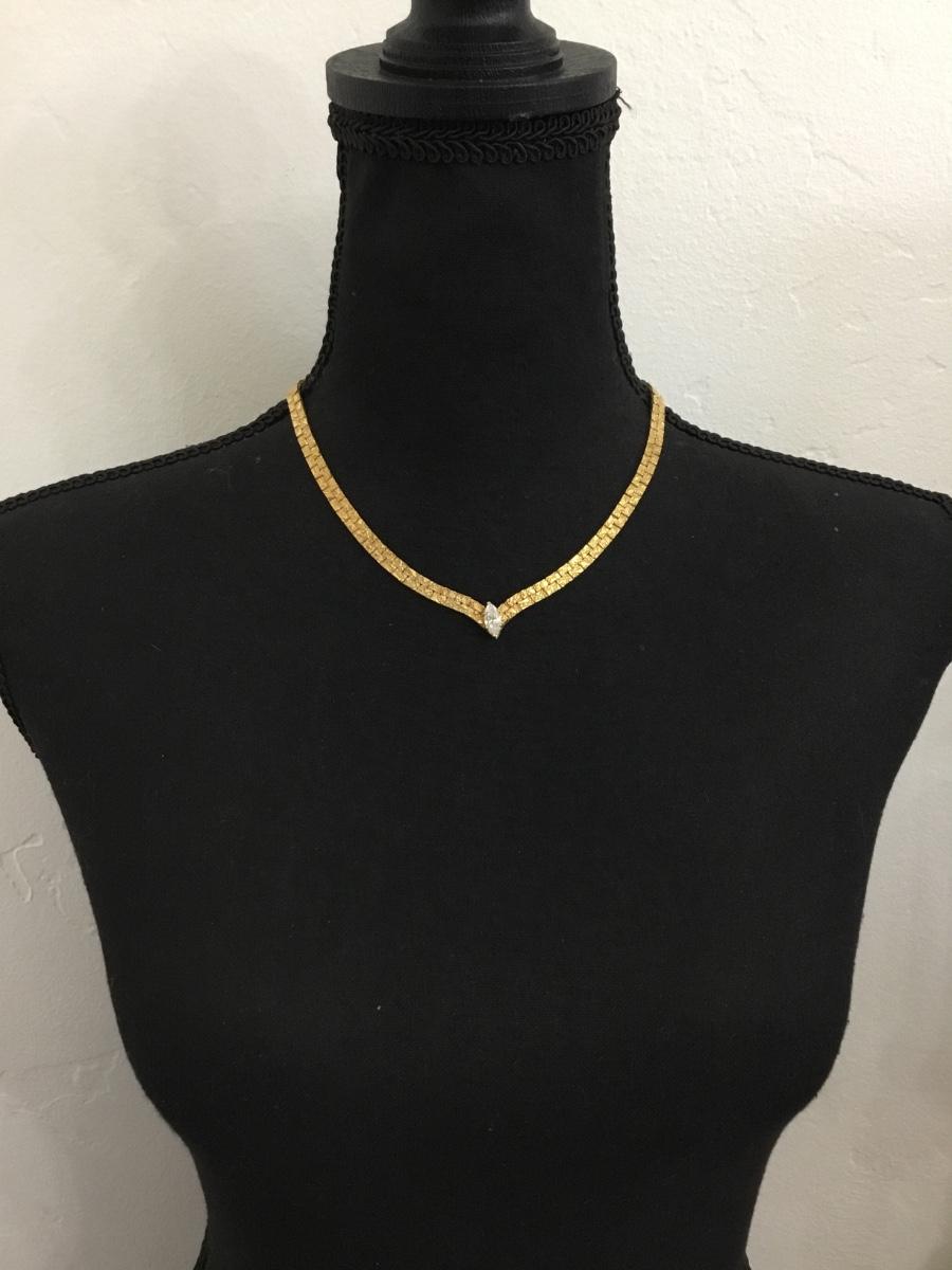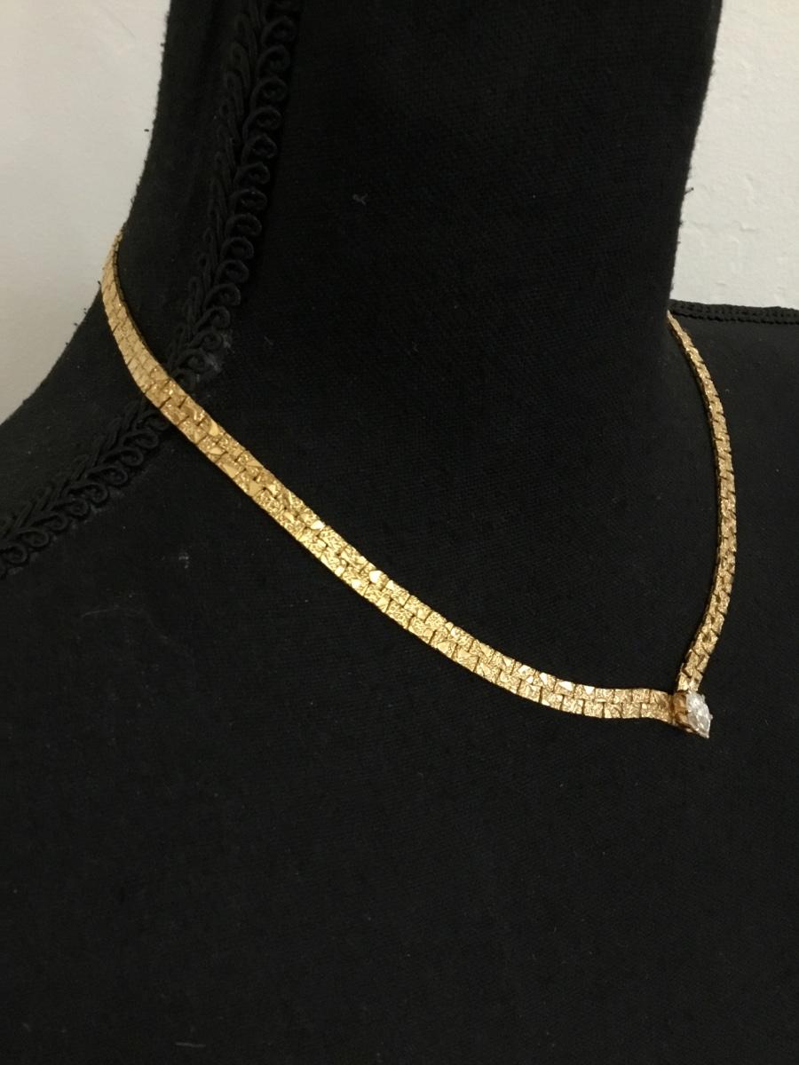 Beautiful vintage, gold tone chain, crystal rhinestone statement, necklace