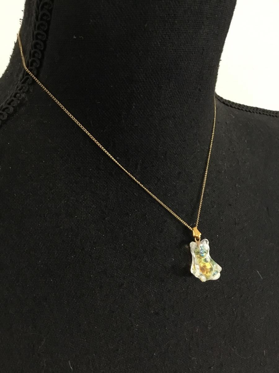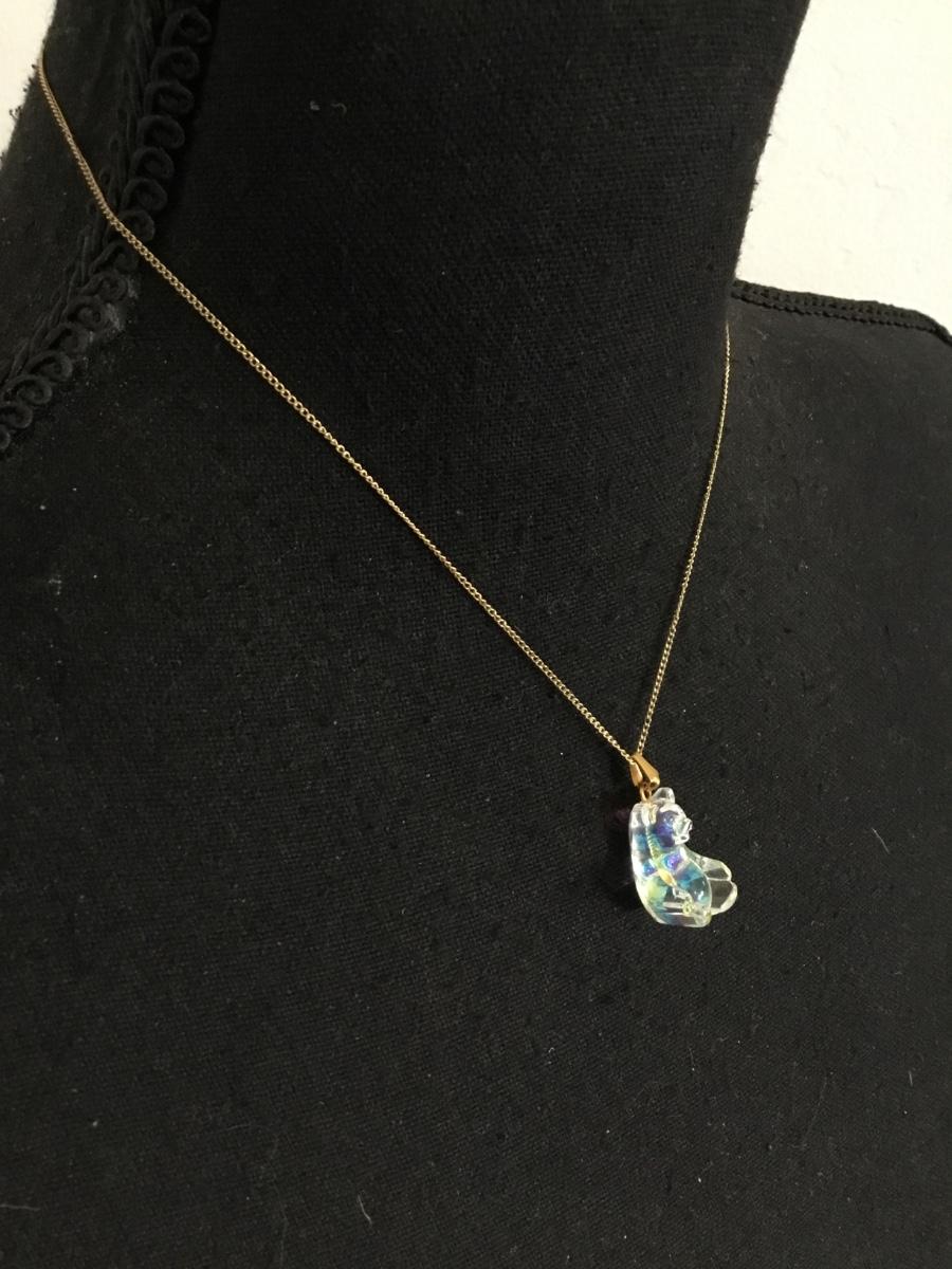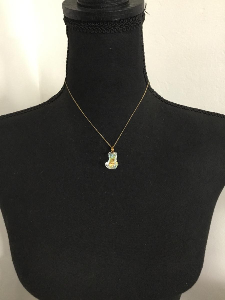 Beautiful vintage, gold tone, chain necklace and translucent crystal, gummy bear pendant