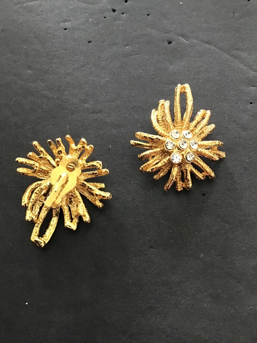 Beautiful vintage goldtone earrings with clear rhinestones. Please see attached photos.