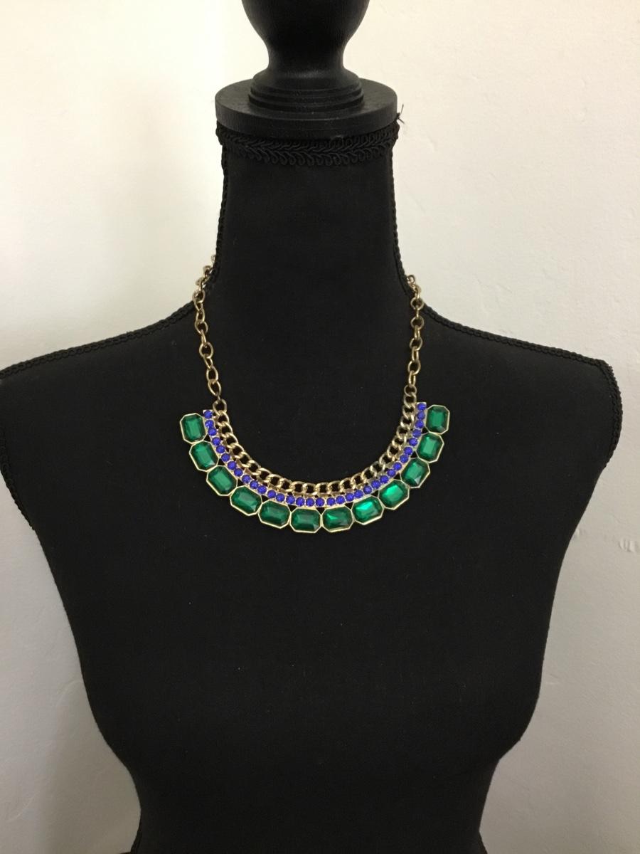 Beautiful vintage, gold tone , emerald green, rhinestone, fashion, statement, necklace