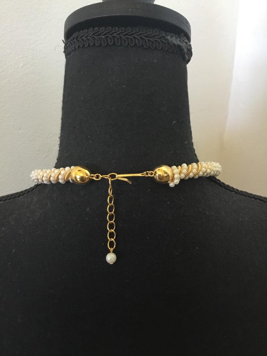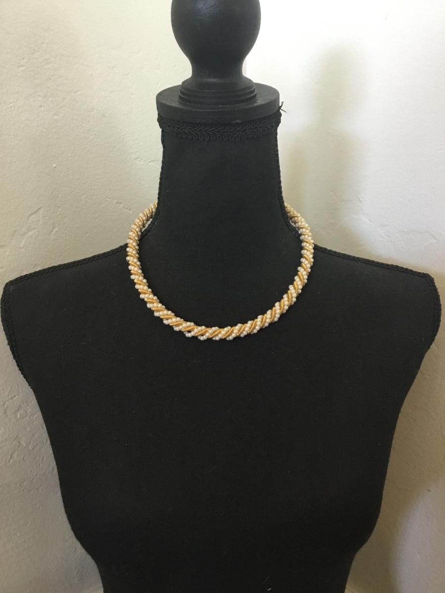 Beautiful vintage, gold tone, faux, pearl, twisted, collar statement, necklace