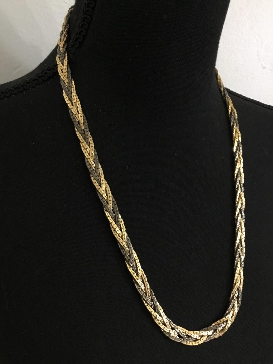 Beautiful, vintage, gold tone, gunmetal gray, braided chain necklace