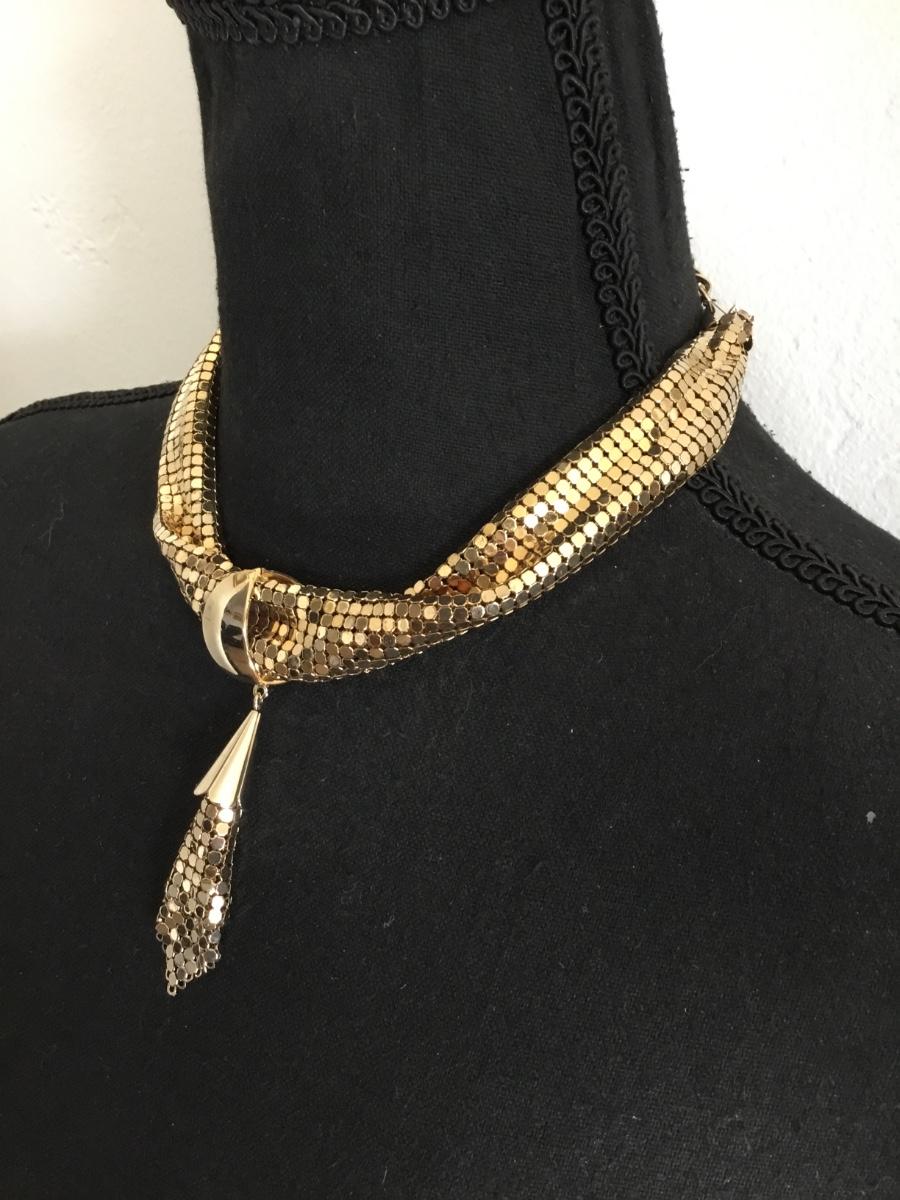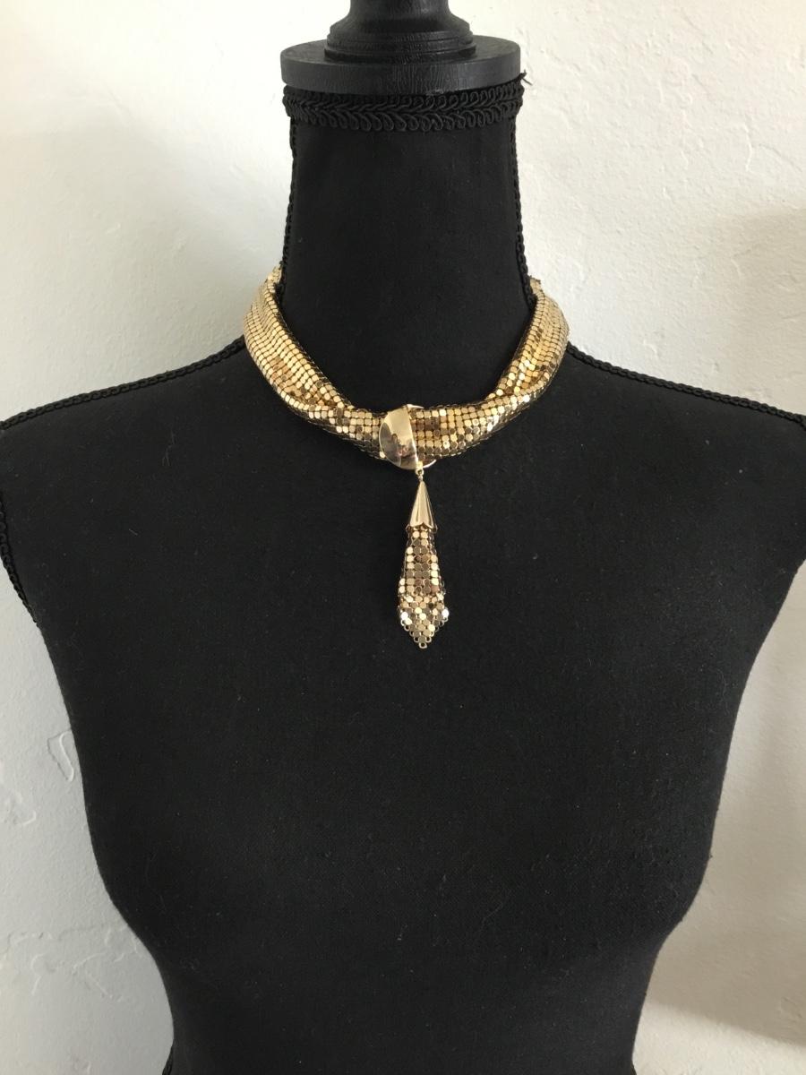 Beautiful vintage, gold tone, mesh, choker statement, tassel necklace