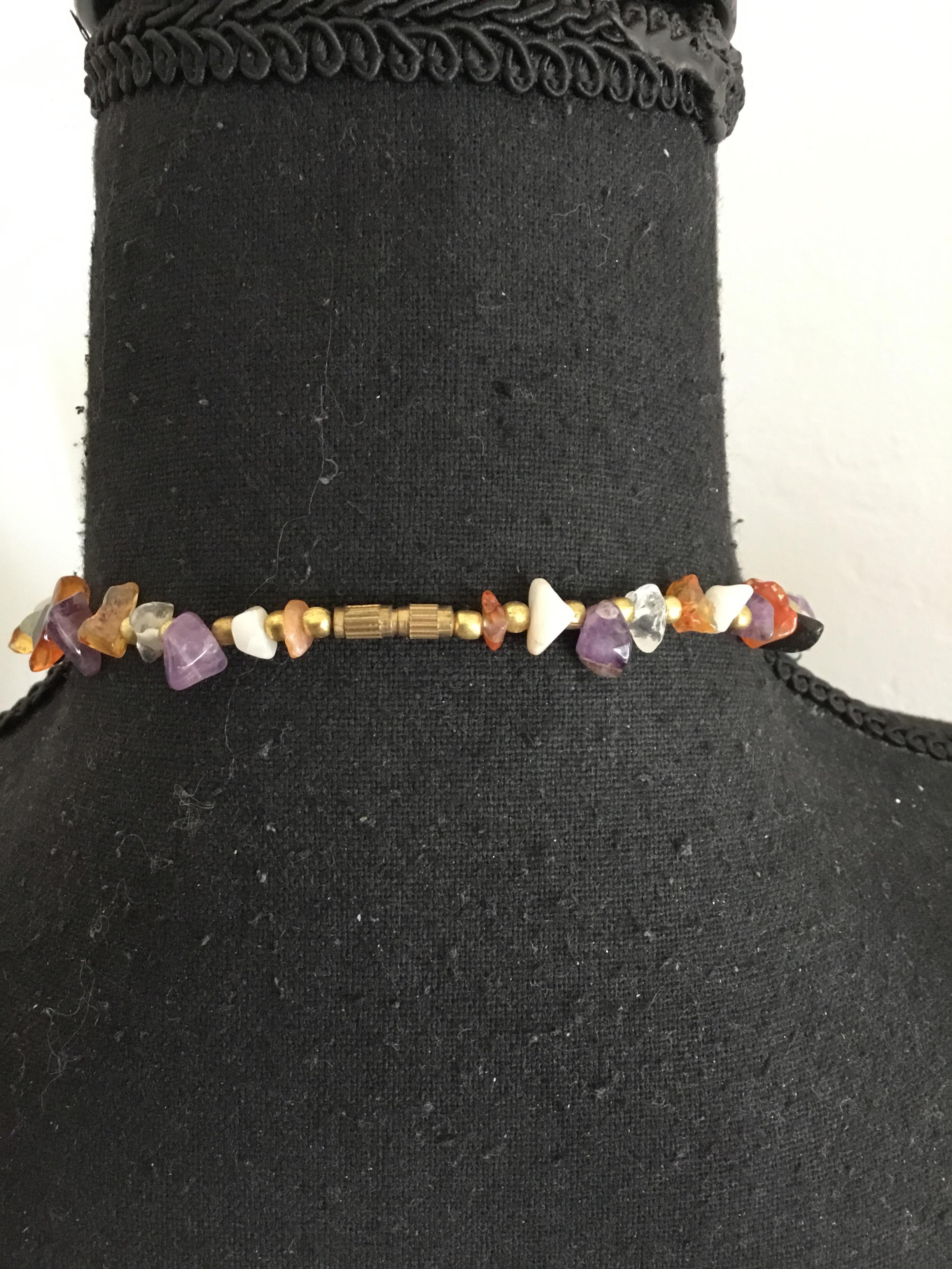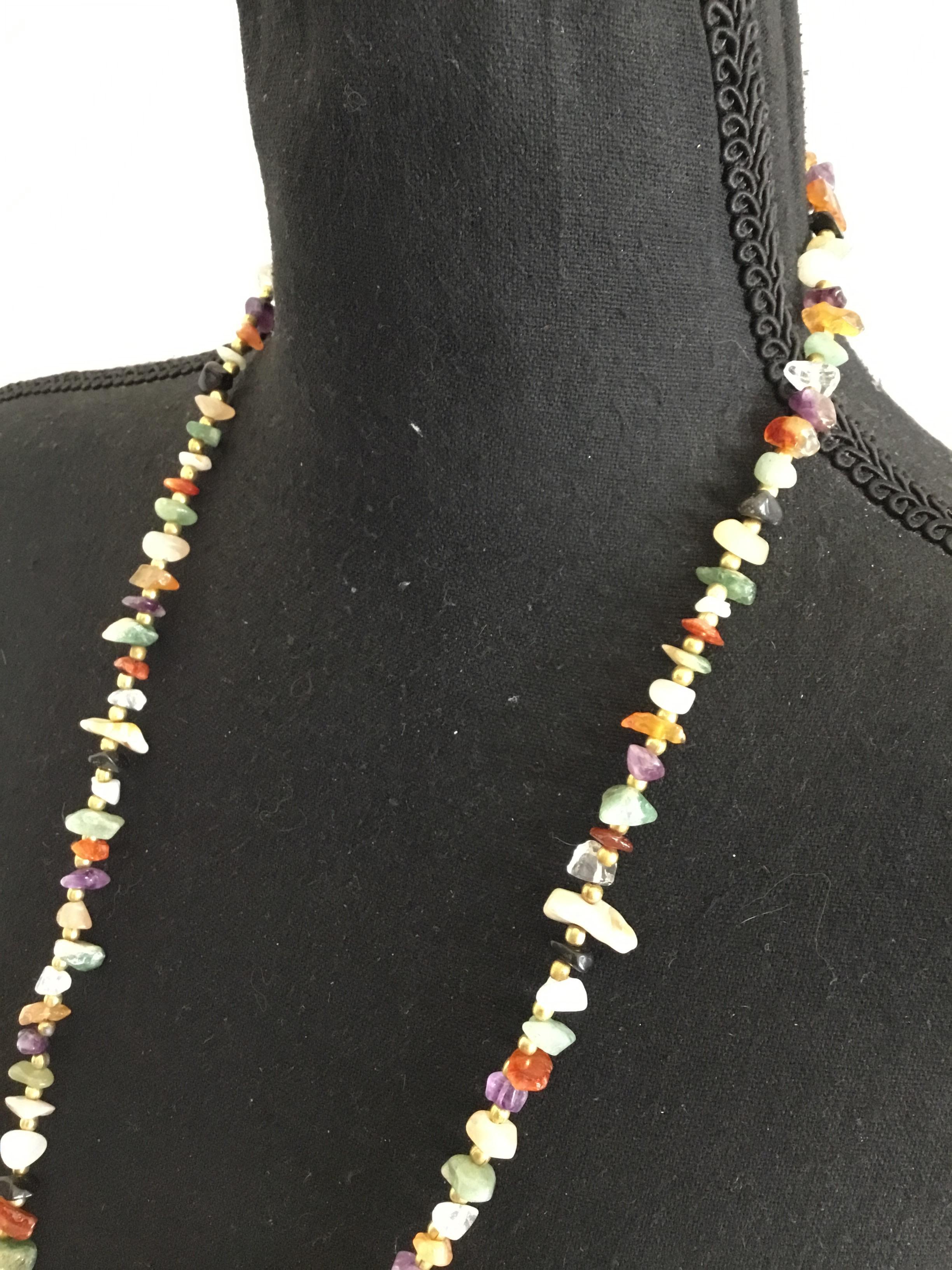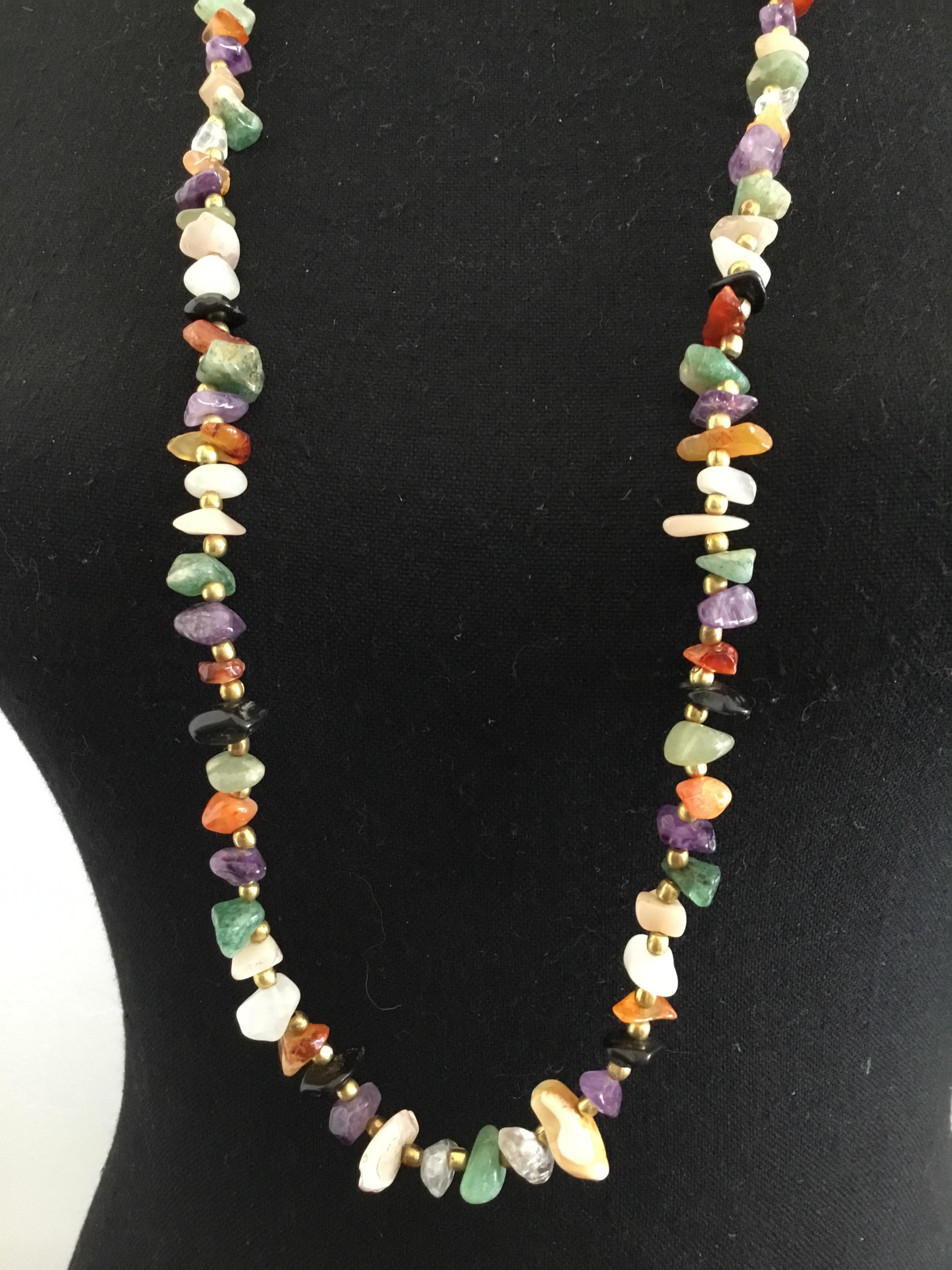 Beautiful, vintage, gold tone Multi color gemstone necklace very nice & long