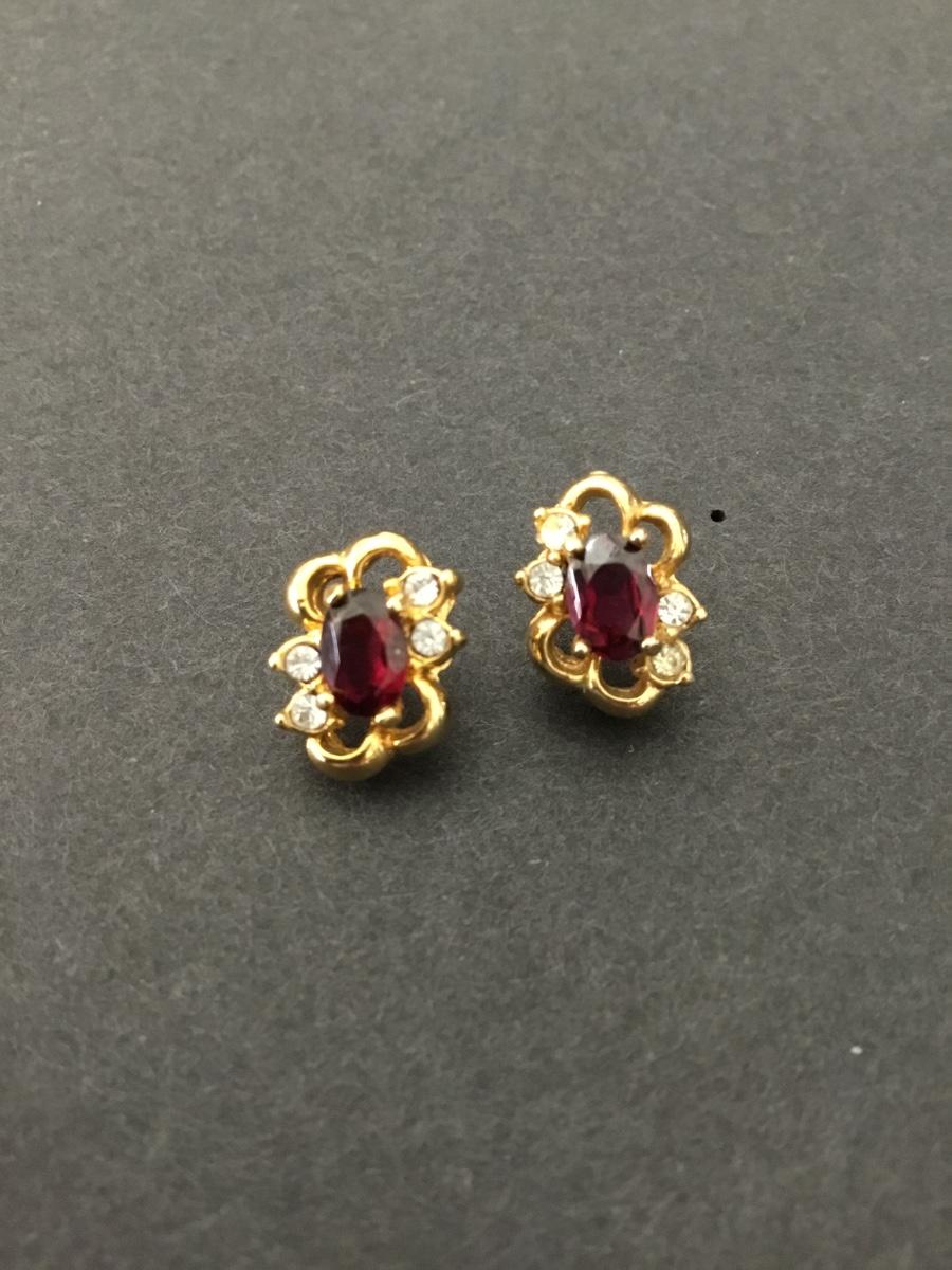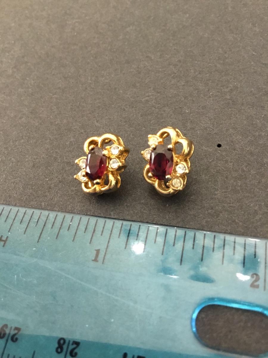 Beautiful, vintage, gold tone Ruby, and faux Dimond stud earrings
