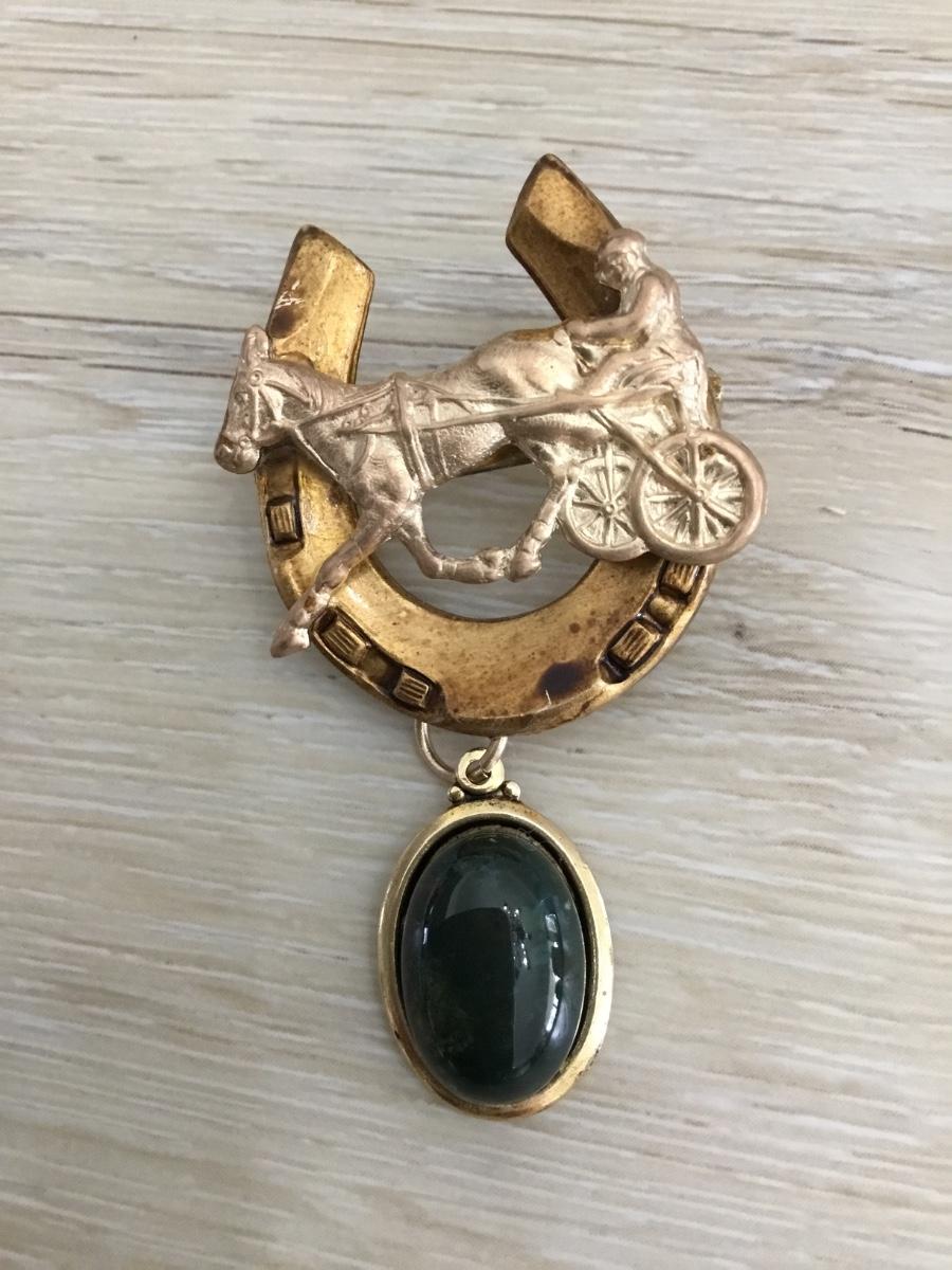 Beautiful, vintage, gold, toned, brooch, &stone pendant