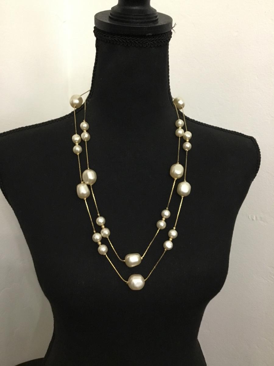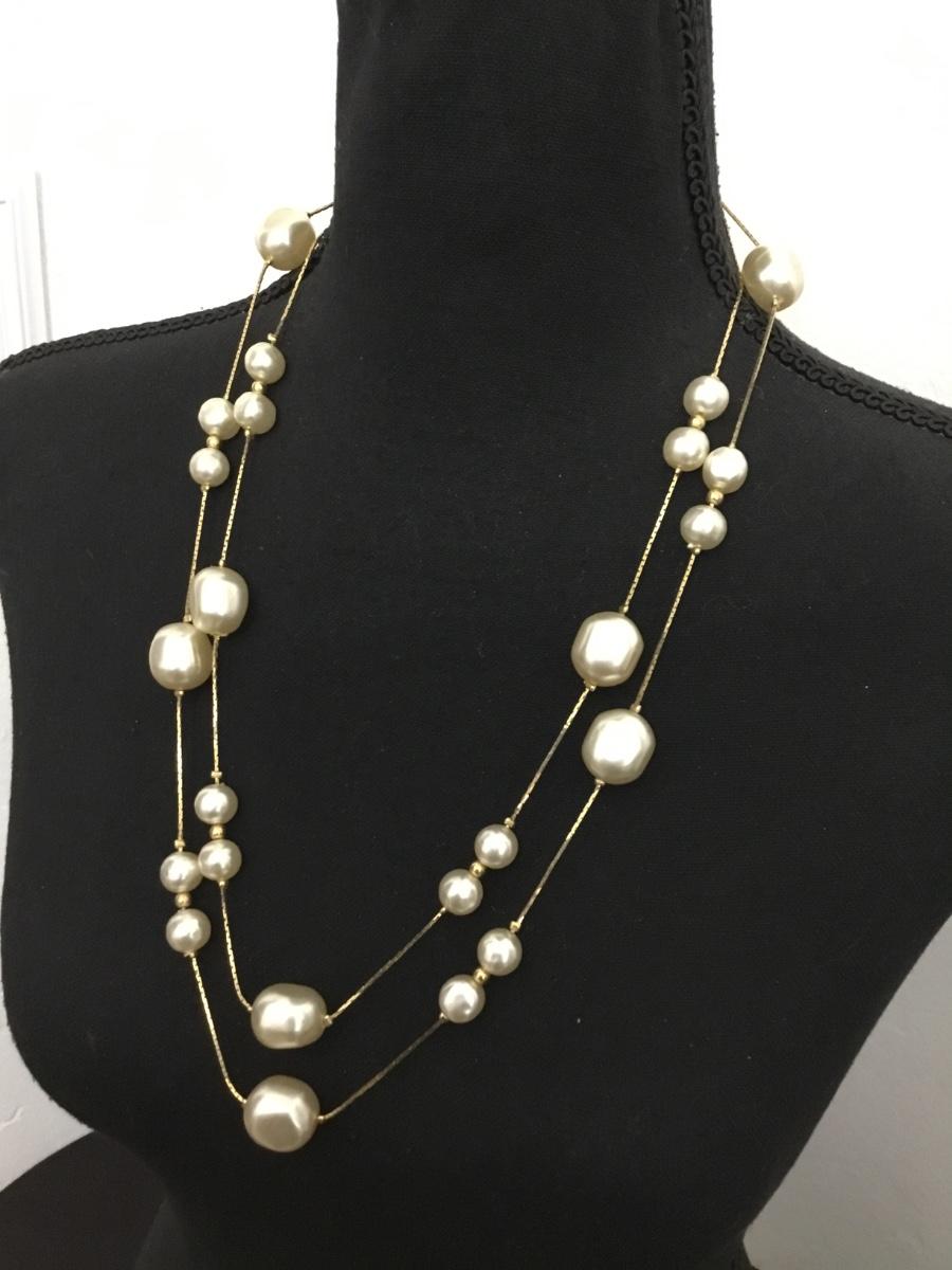 Beautiful, vintage, gold, toned, chunky faux, pearl double strand necklace
