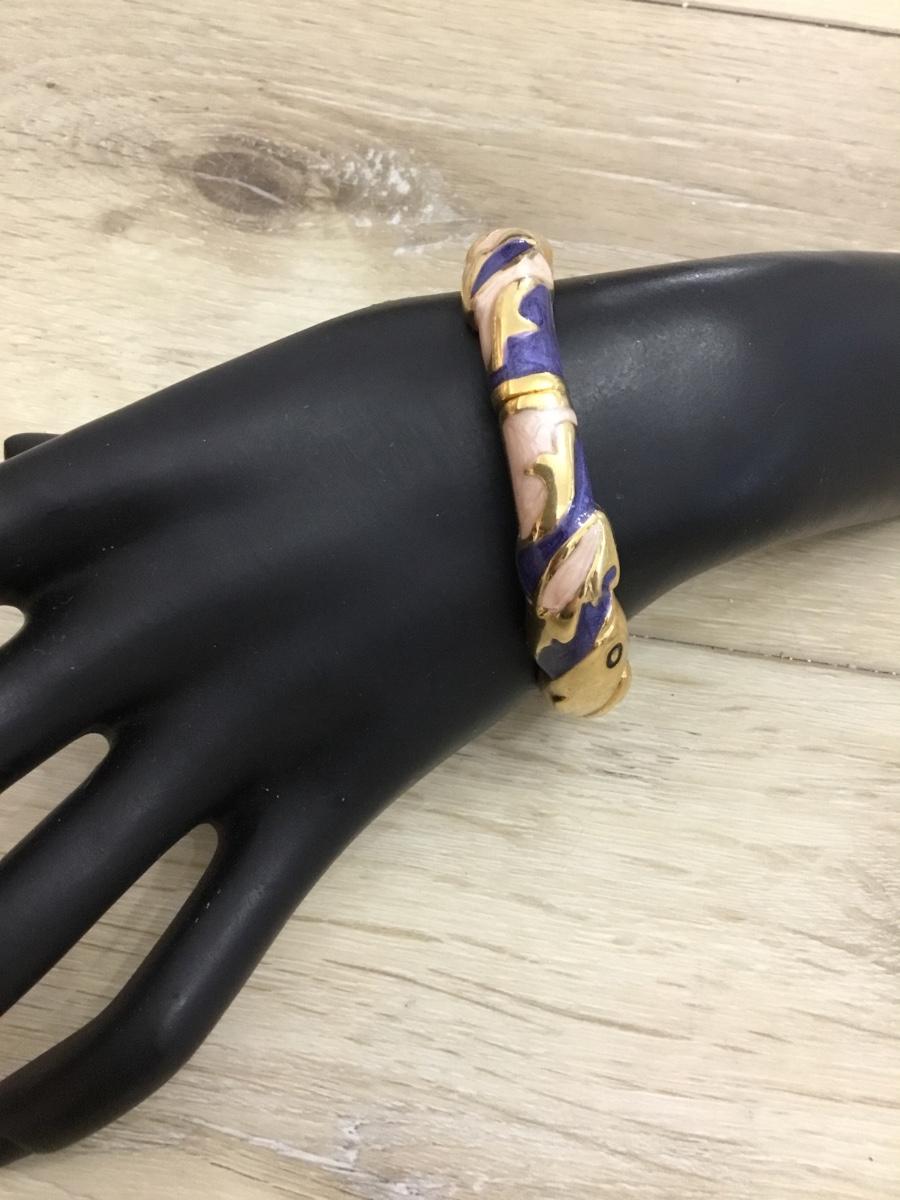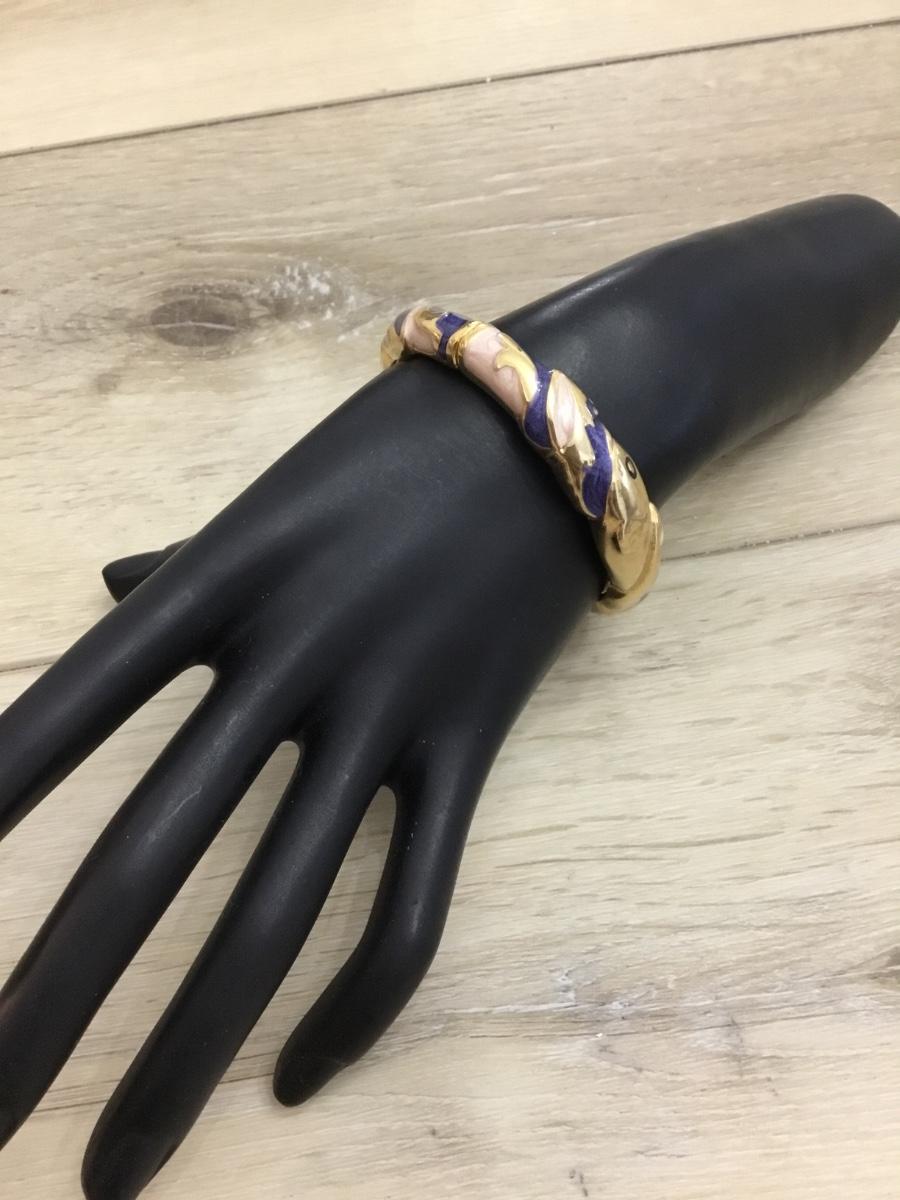 Beautiful, vintage, gold, toned enamel hinged bracelet