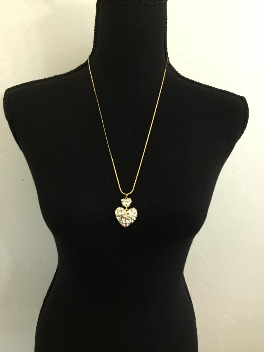 Beautiful, vintage, gold, toned, heart pendant, chain necklace