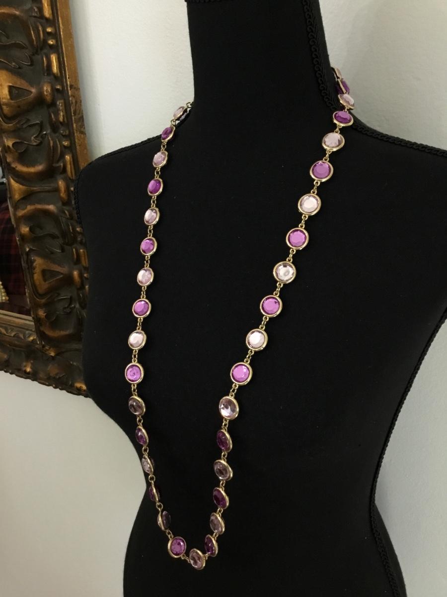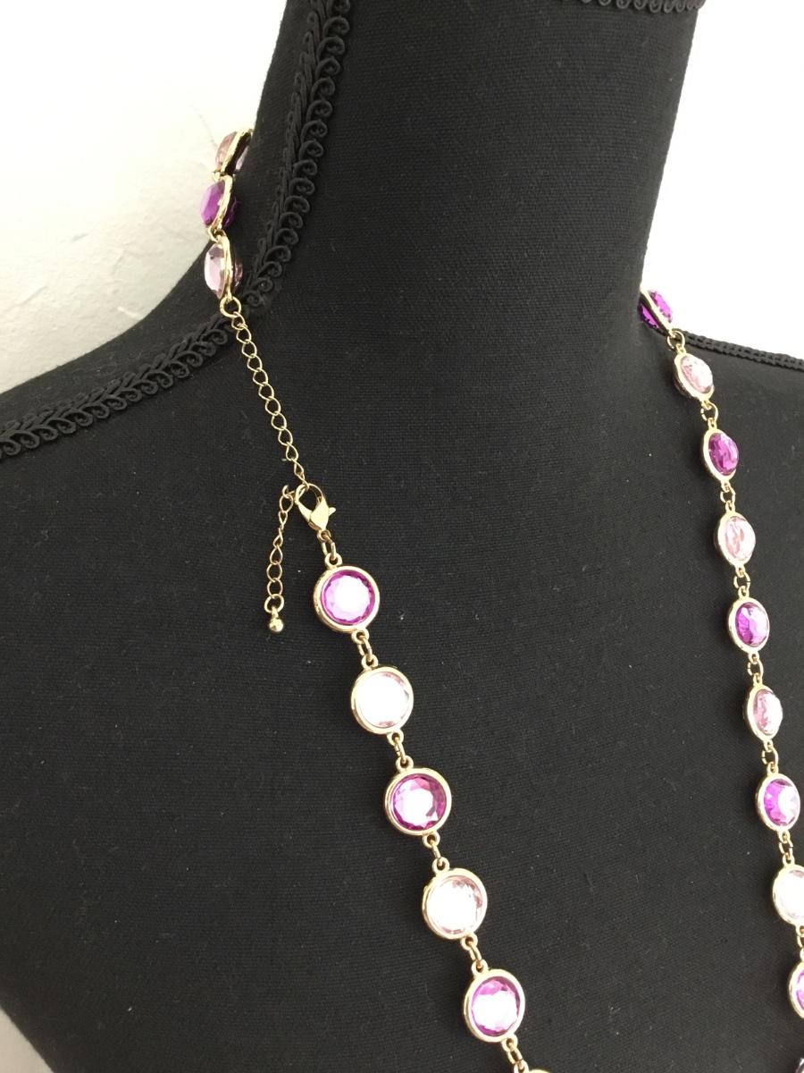 Beautiful, vintage, gold, toned, light, purple rhinestone fashion, statement, necklace