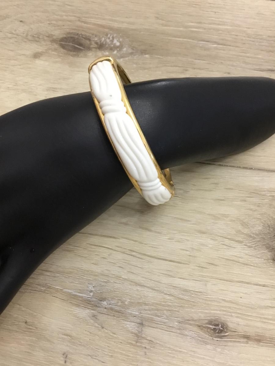 Beautiful, vintage, gold toned Lucite hinged bracelet