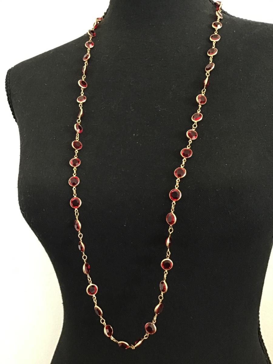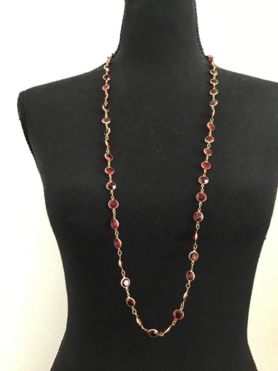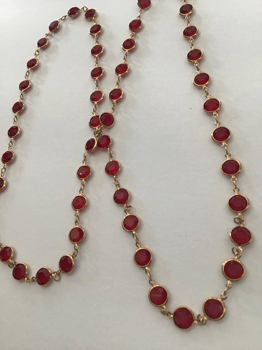 Beautiful vintage, gold toned, red faceted glass caged bead necklace very beautiful