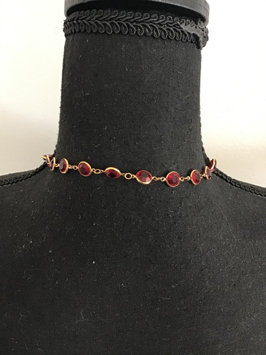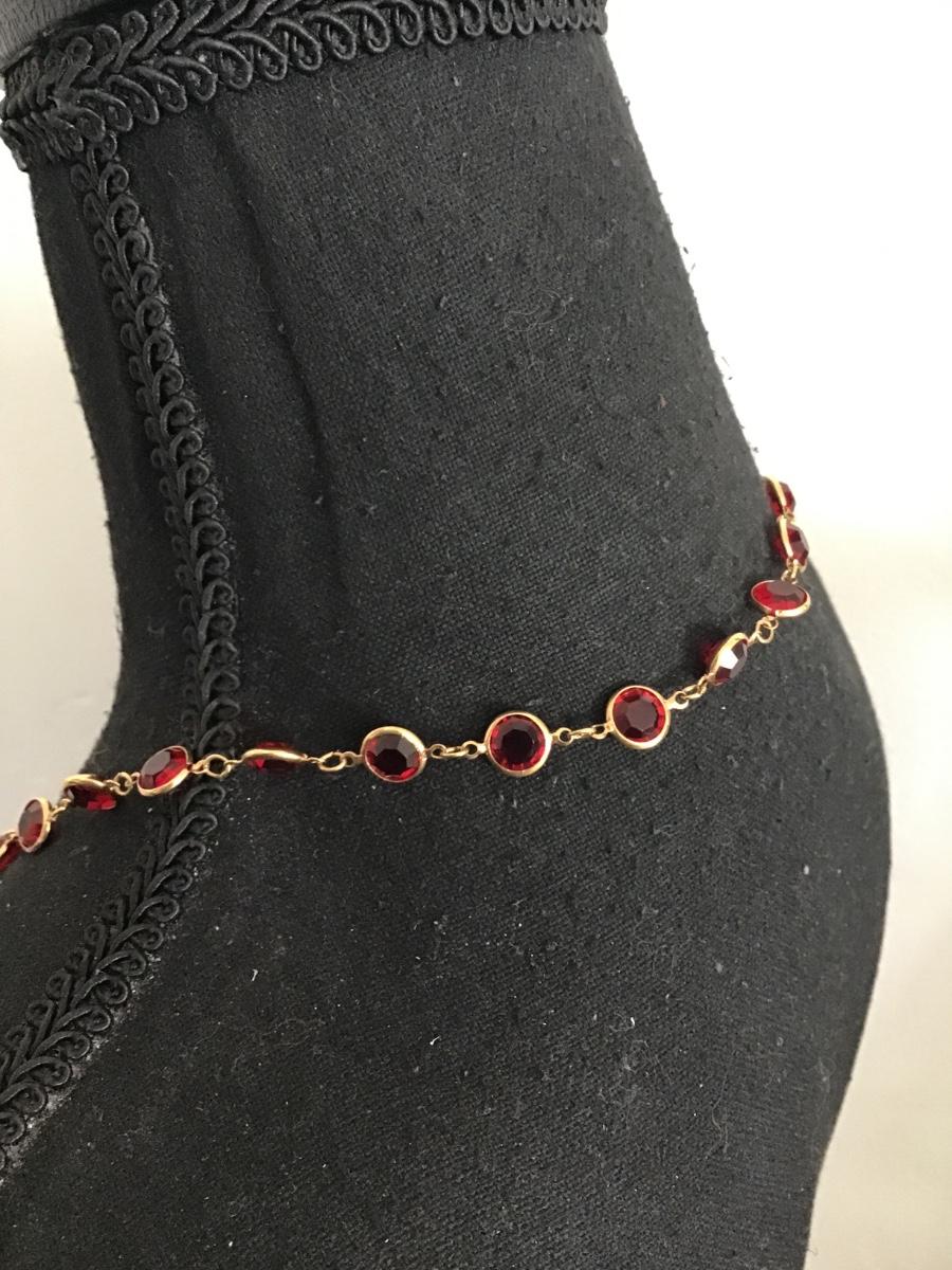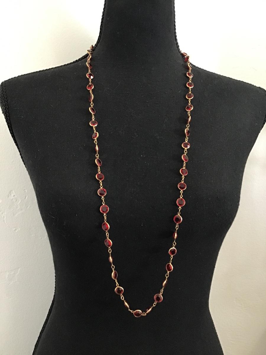 Beautiful vintage, gold toned, red faceted glass caged bead necklace very beautiful