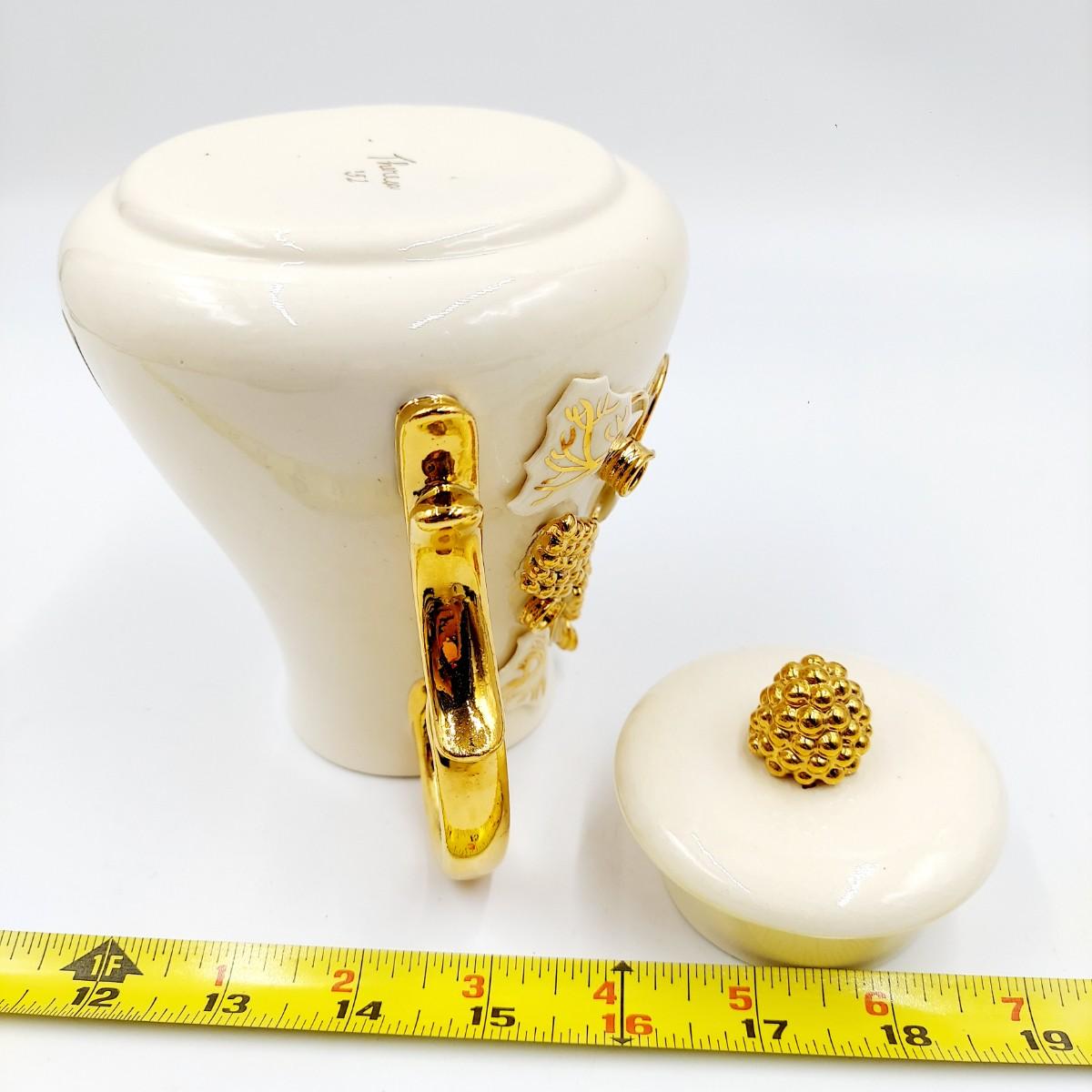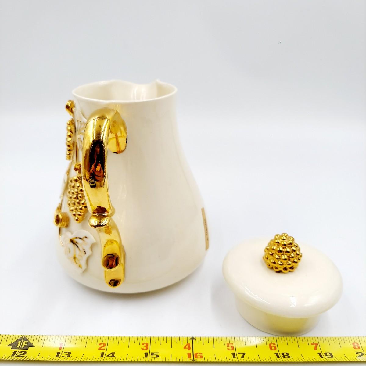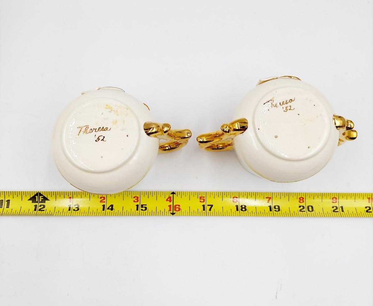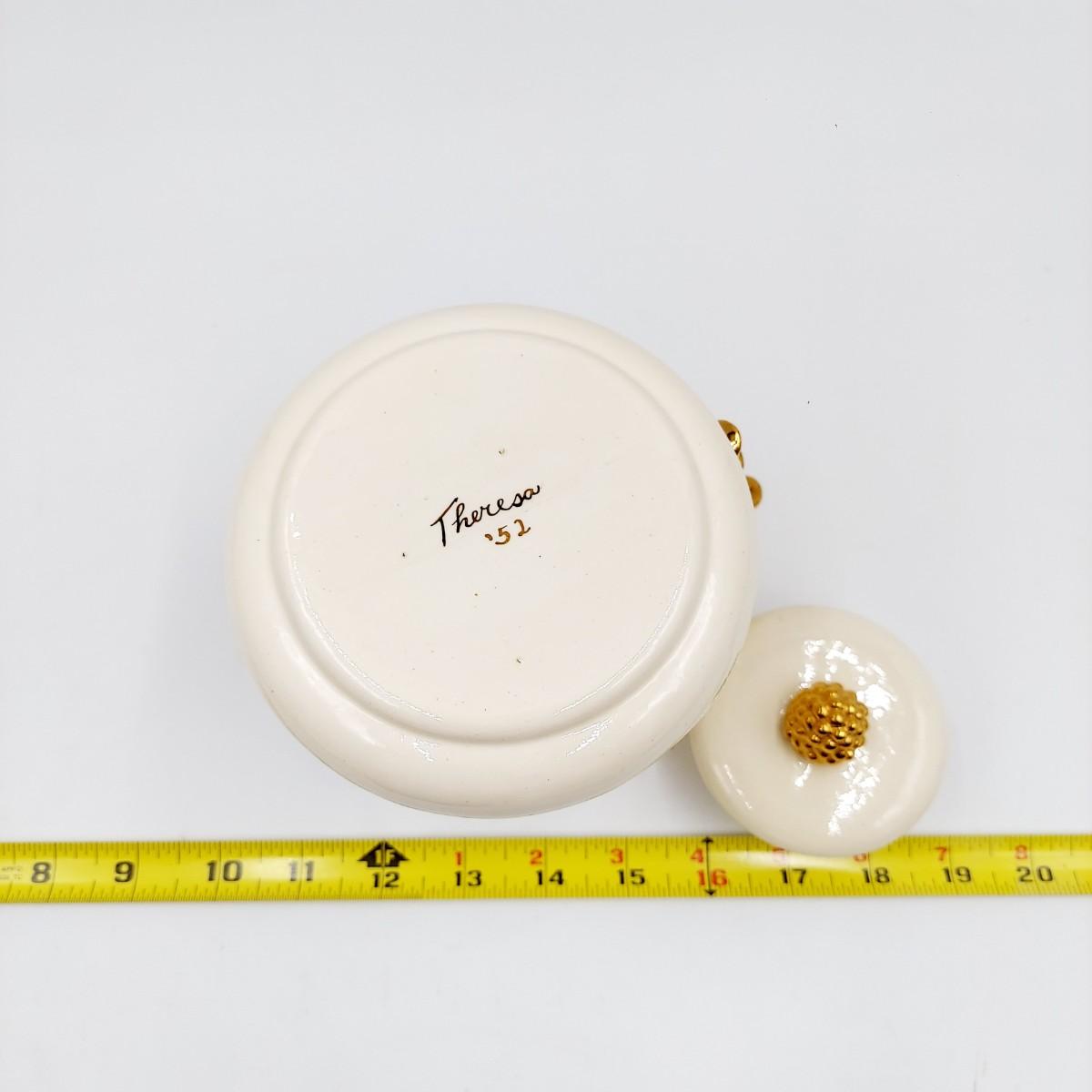 BEAUTIFUL VINTAGE GOLD TRIMMED CERAMIC TEAPOT, CREAM & SUGAR BY TERESA
