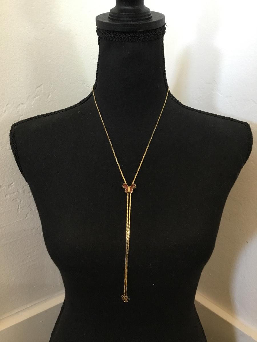Beautiful vintage, goldtone, butterfly, lariat slider, butterfly slider necklace excellent condition