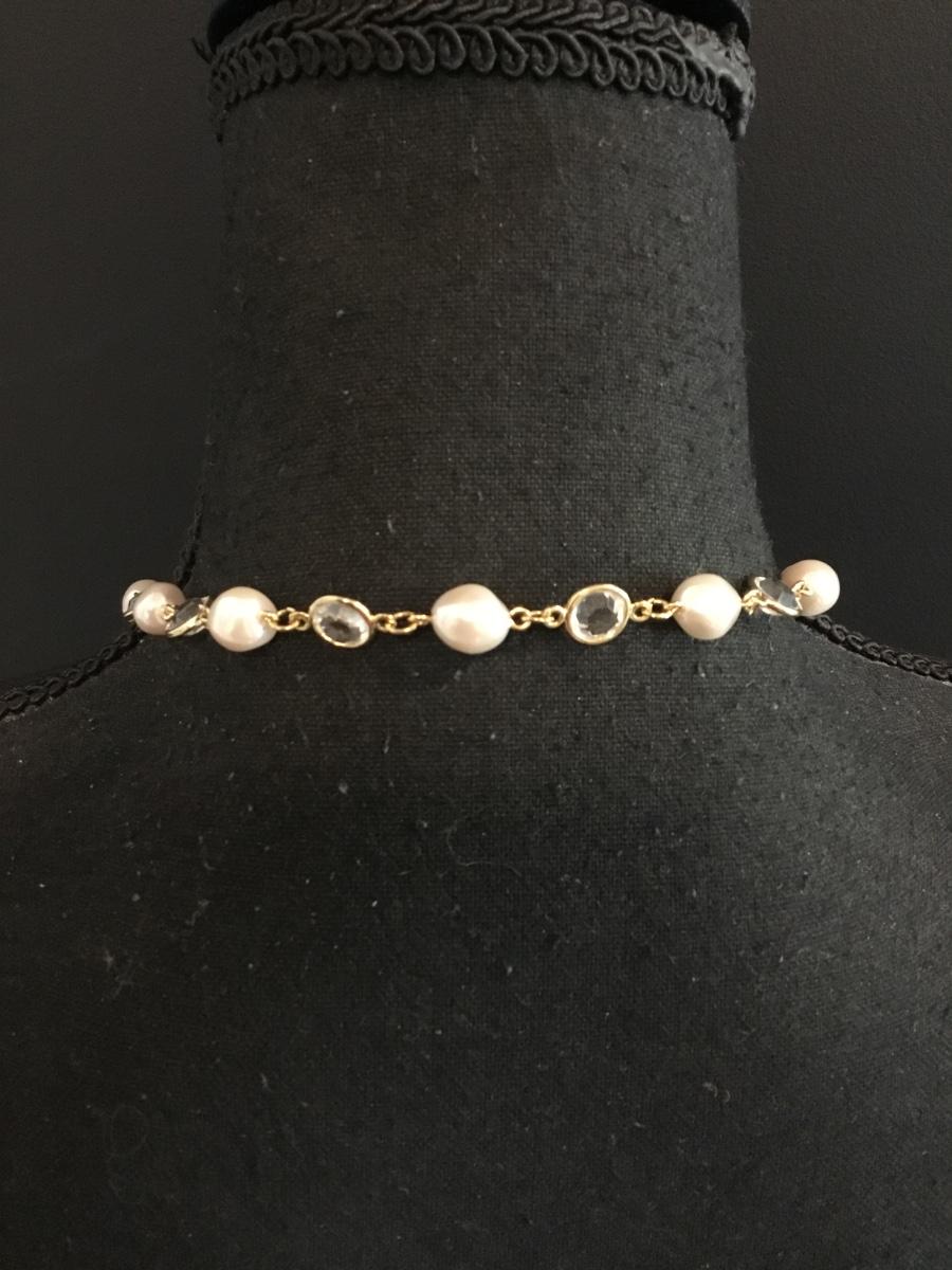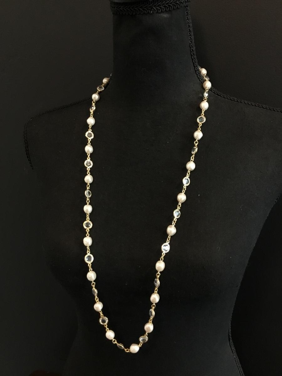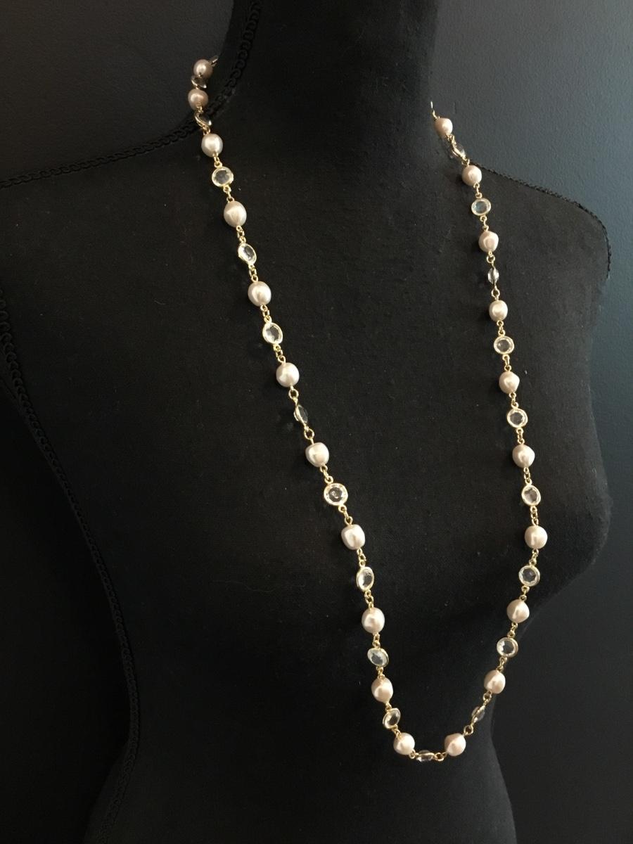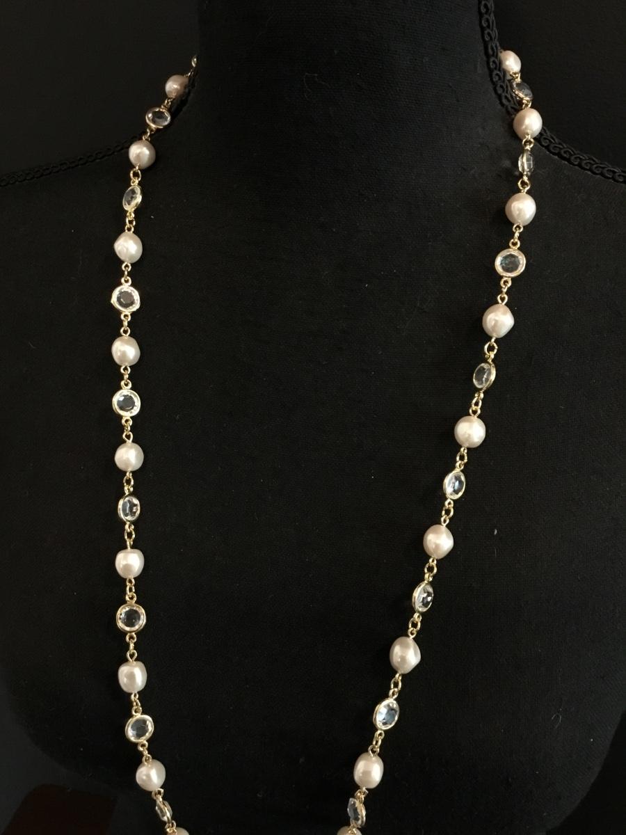 Beautiful vintage, goldtone, faux pearl faux glass caged bead necklace. Excellent condition.